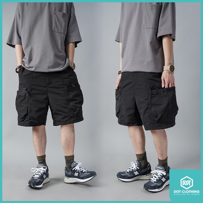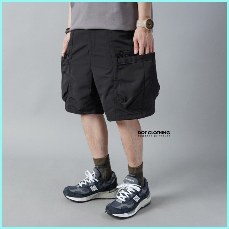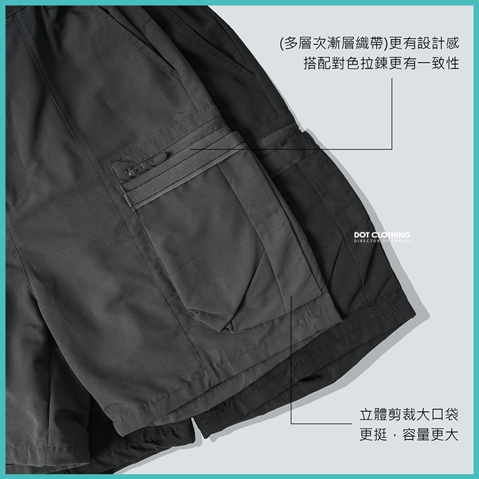 機能 多口袋 大口袋 工裝 短褲 完美版型 立體口袋 織帶 雙邊拉鍊 寬鬆版型 鬆緊腰圍 黑 深灰 DOT聚點