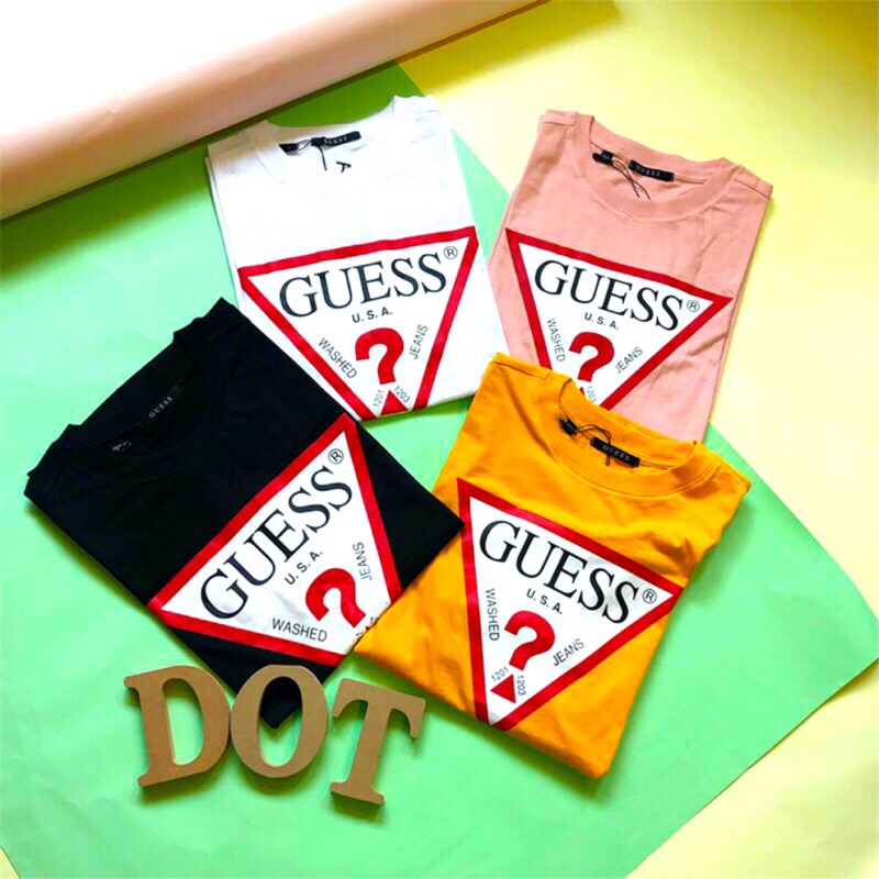GUESS LOGO TEE 黑 白 粉 芥末黃 倒三角 寬鬆版型 實心LOGO 秀智代言款 男女 韓國貨