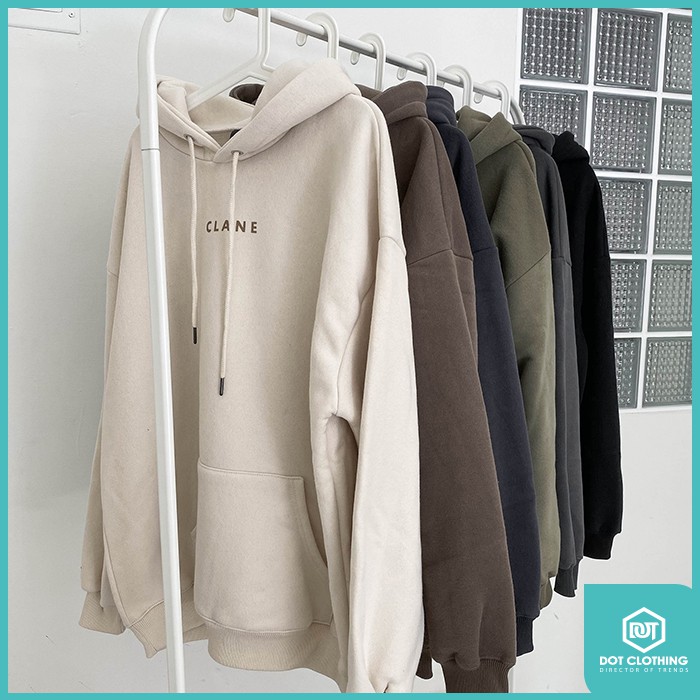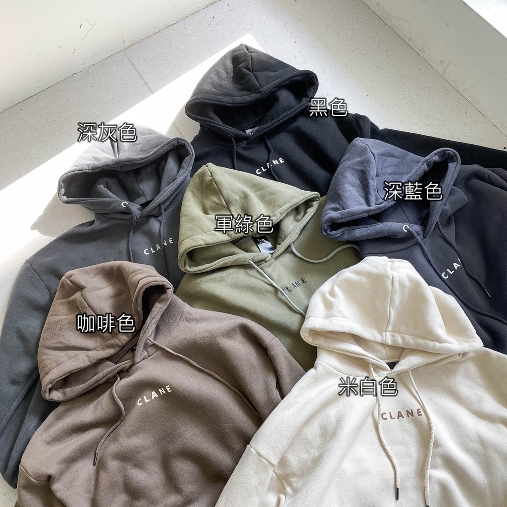 韓國 KOREA CLANE HOODIE 黑 米白 咖啡 軍綠 深藍 深灰 帽T 寬鬆板型 簡約 零碼出清 DOT聚點