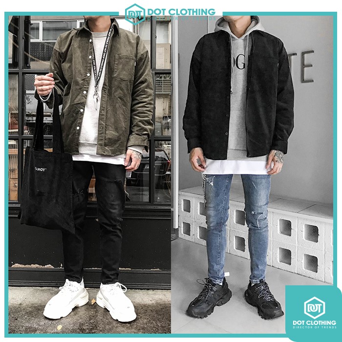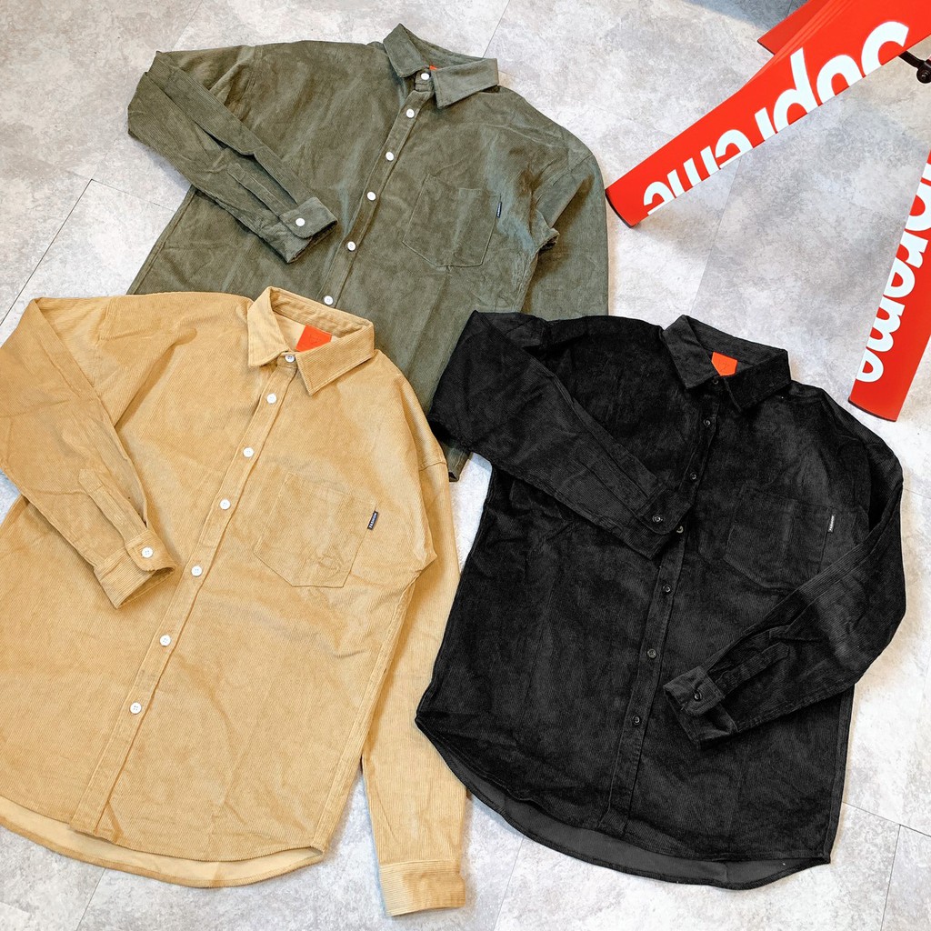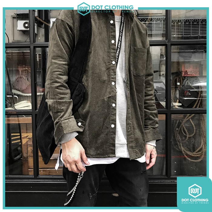 KOREA CORDUROY SHIRT 卡其 軍綠 黑 燈心絨 素面 襯衫 秋冬新款 韓國製 零碼出清 DOT聚點