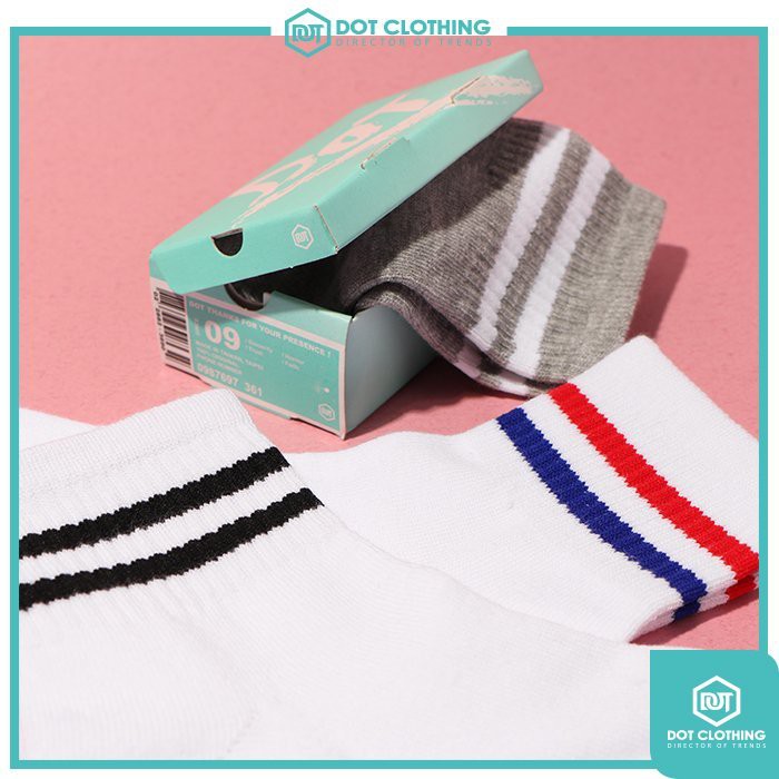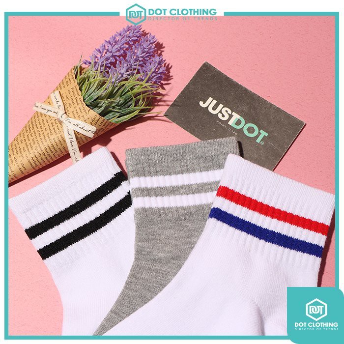 SOCK 紅藍 白黑 灰白 中筒襪 長襪 學院風 文青 兩條槓 韓系 薄款 超低價下殺 台灣製 DOT聚點