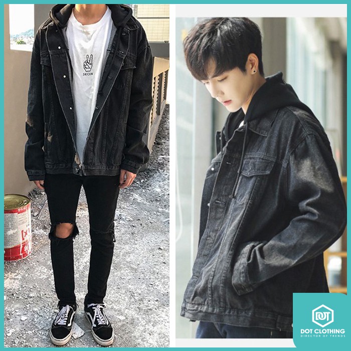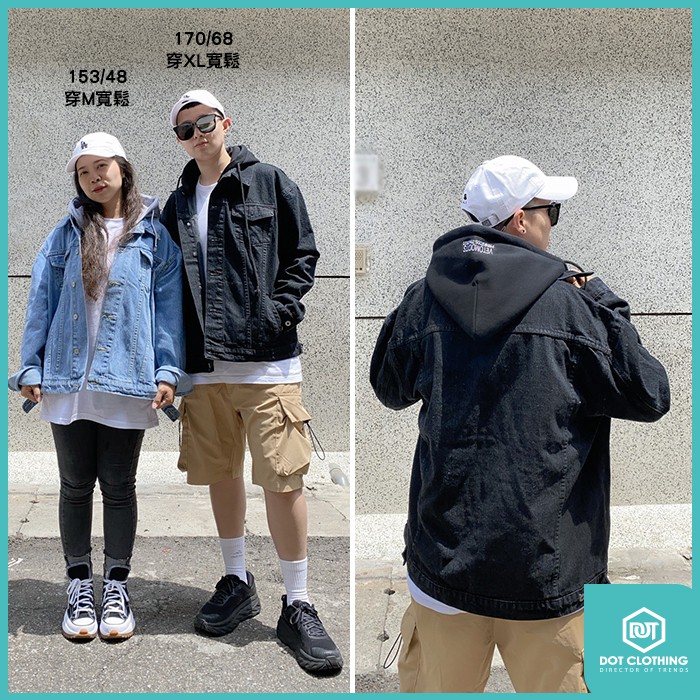 牛仔外套 連帽外套 水洗藍 水洗黑 連帽 單寧 可拆帽 寬版 復古 男女都可穿 零碼出清 DOT 聚點