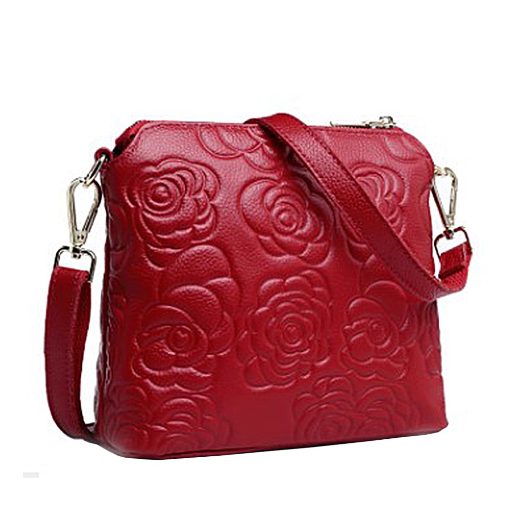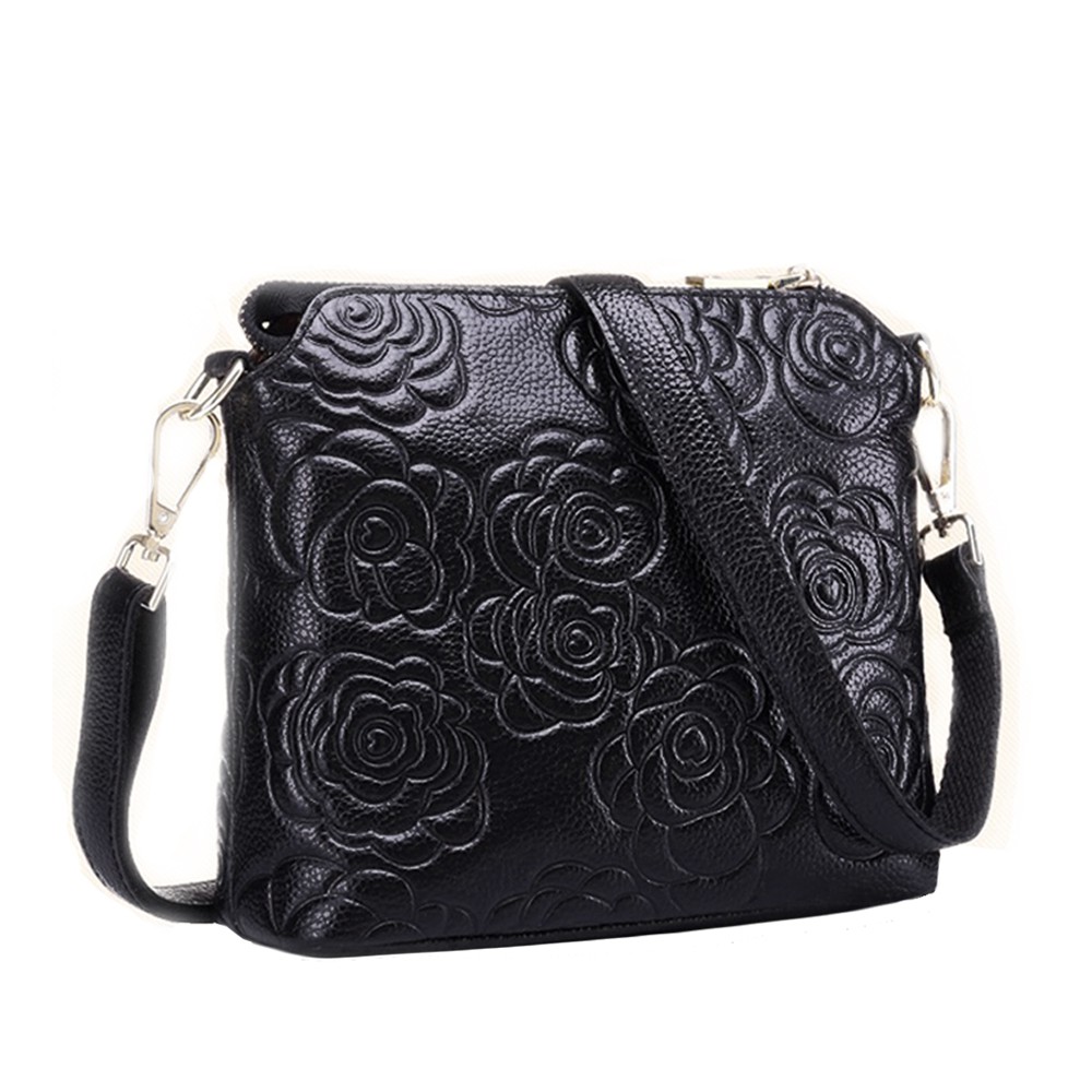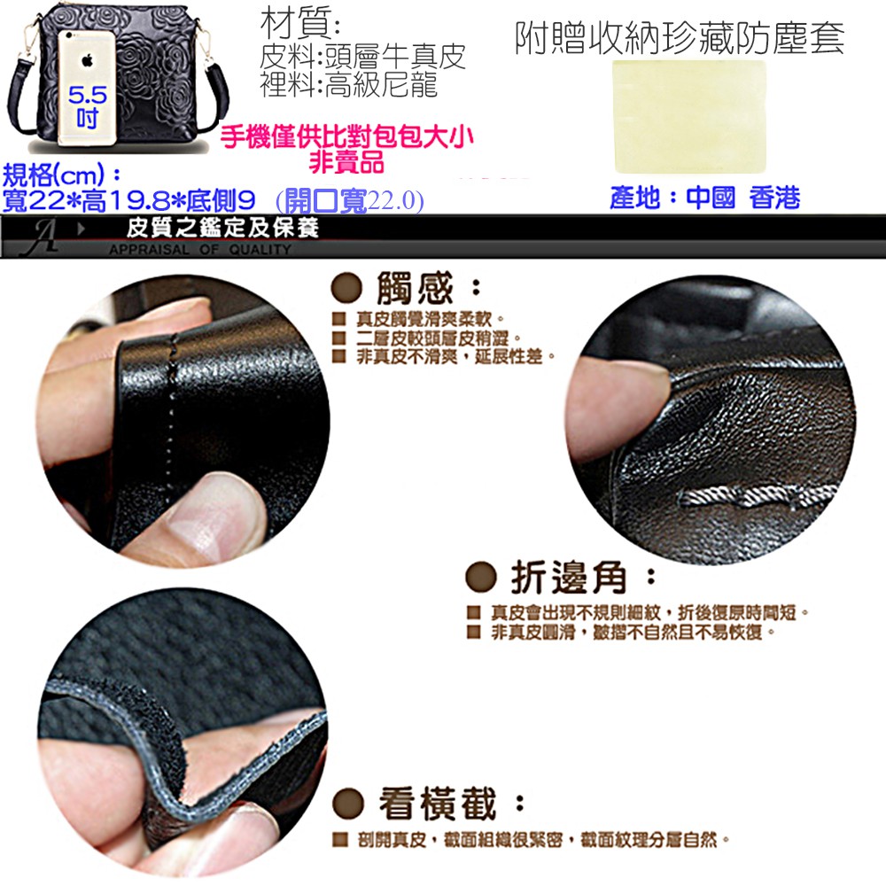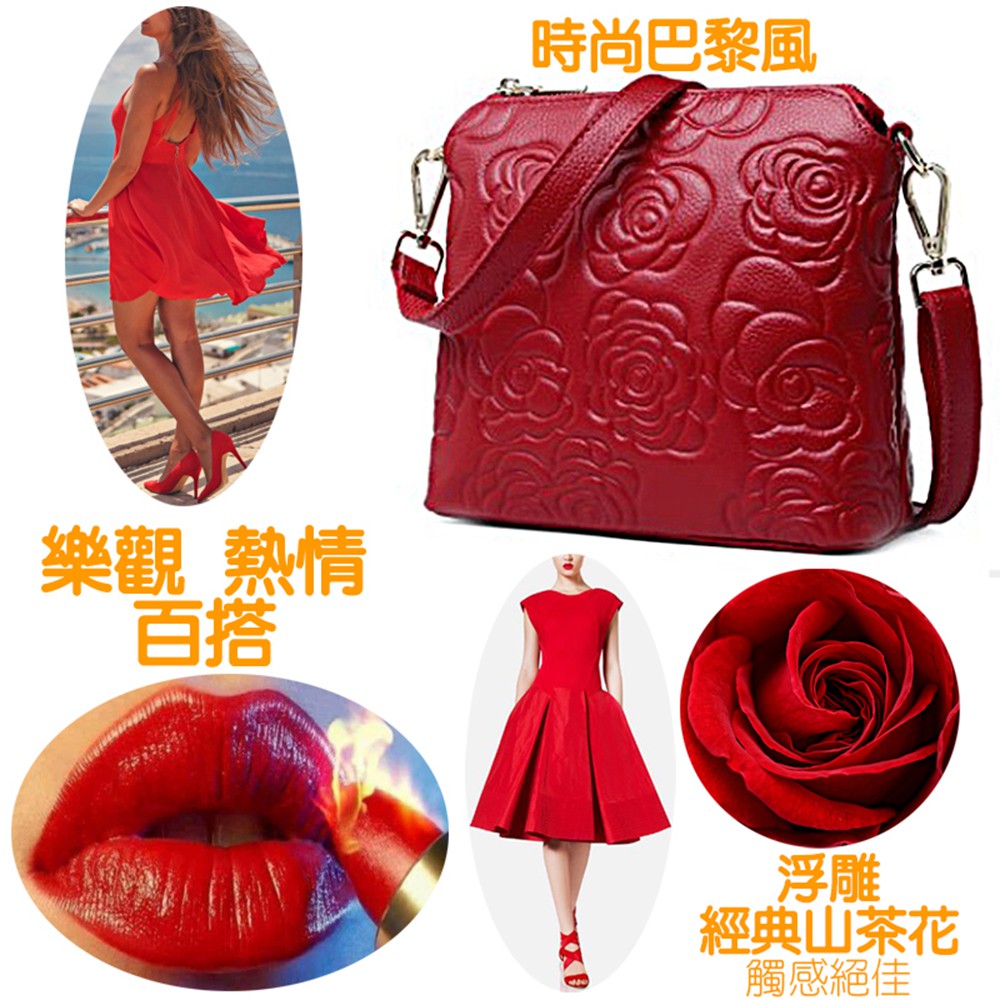 [現貨台南] <justlove>名牌風經典時尚頭層牛皮山茶花真皮拉鏈女包斜背側背肩背手提包(05K35-8)黑