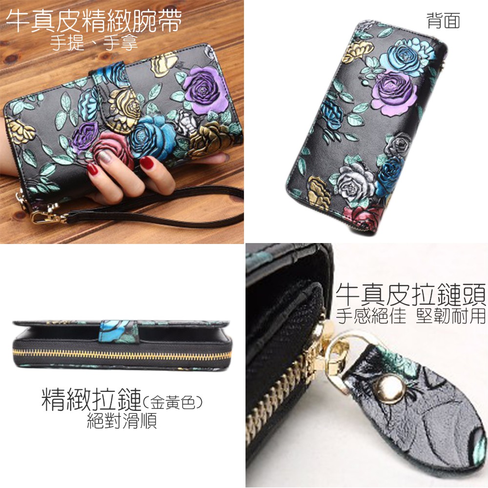 [現貨台南] <justlove>浪漫玫瑰花紋真皮皮夾牛皮長夾手拿手拎手挽手腕小包放雙手機包(05K42-0)銀玫瑰