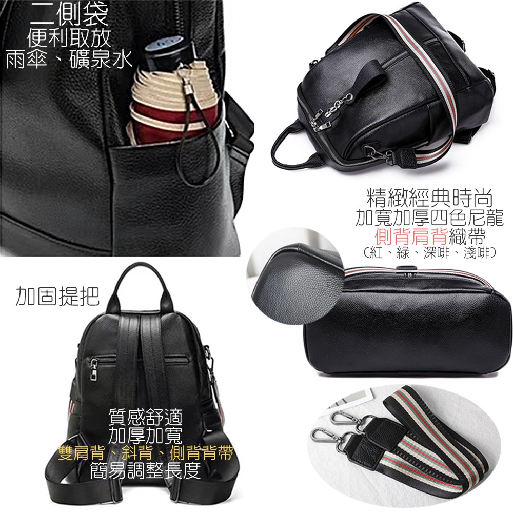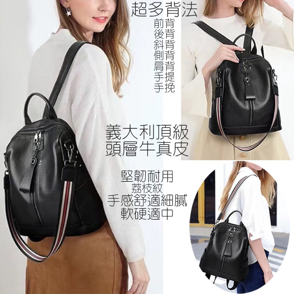 [現貨台南] <justlove>頭層牛皮百搭通勤旅行休閒男女筆電公事包雙肩後背側背斜背肩背手提包(0574-9)黑