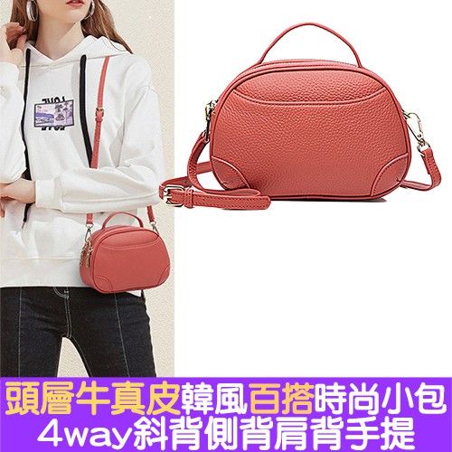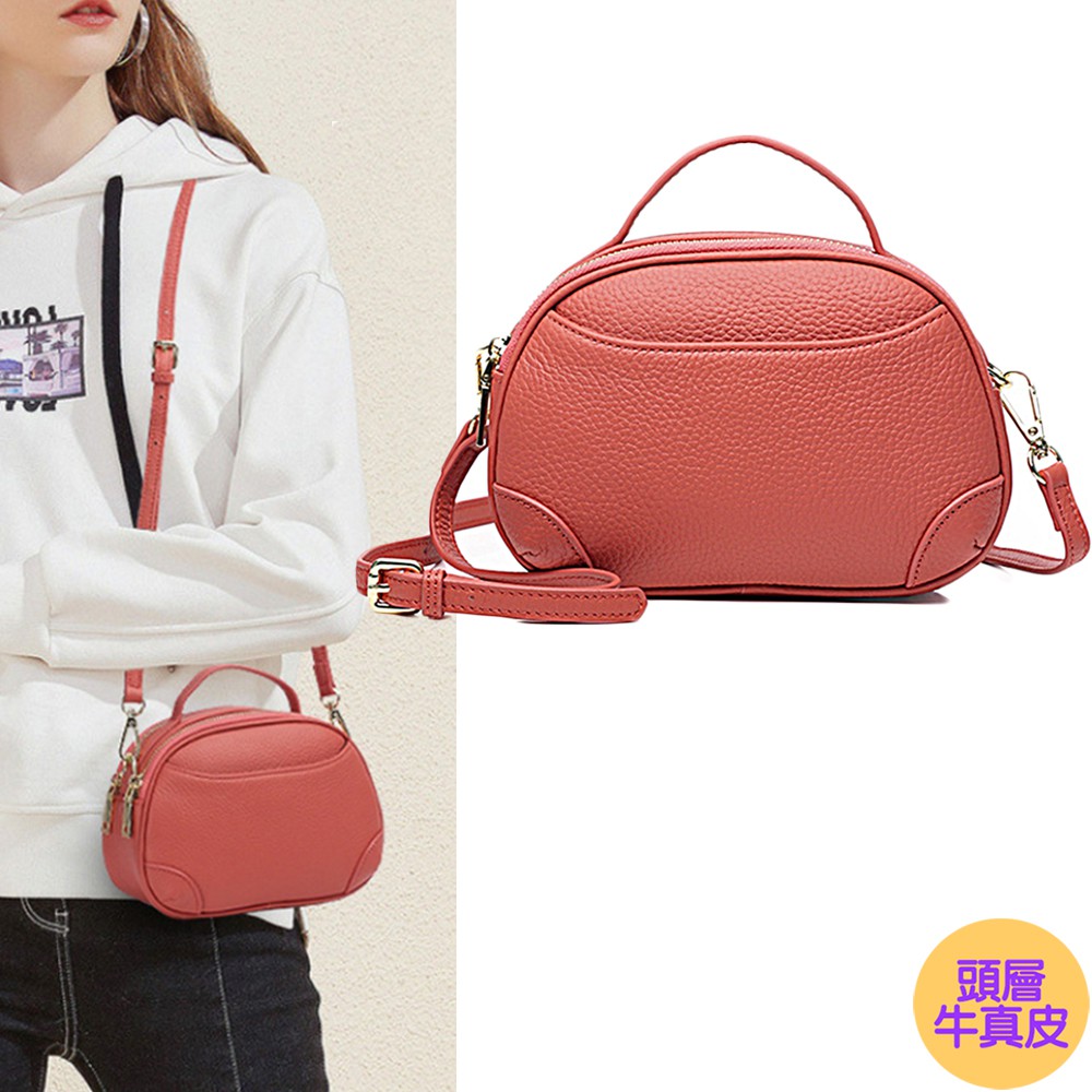 [現貨台南] <justlove>頭層牛皮簡約時尚真皮拉鍊女包大容量橢圓拉鏈小包斜背側背肩背手提包(05K80-8)紅