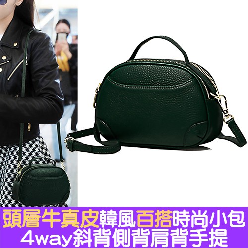 [現貨台南] <justlove>頭層牛皮簡約時尚真皮拉鍊女包大容量橢圓拉鏈小包斜背側背肩背手提包(05K80-8)綠