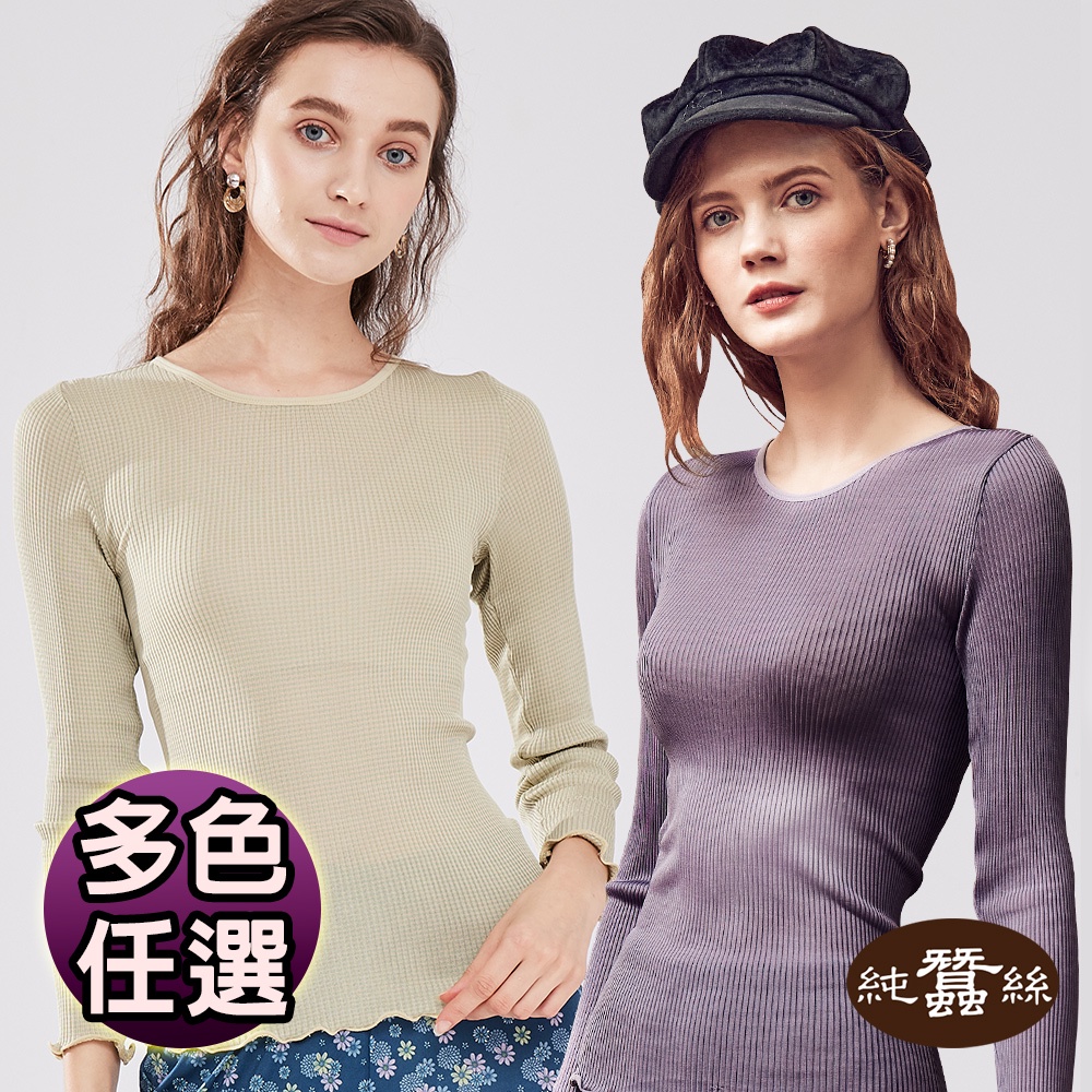 【岱妮蠶絲】羅紋長纖圓領長袖蠶絲上衣-SWL6E401(多色任選)