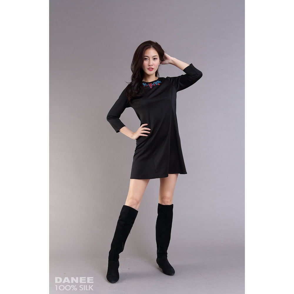 【岱妮蠶絲】貴族簡約時尚繡花蠶絲洋裝