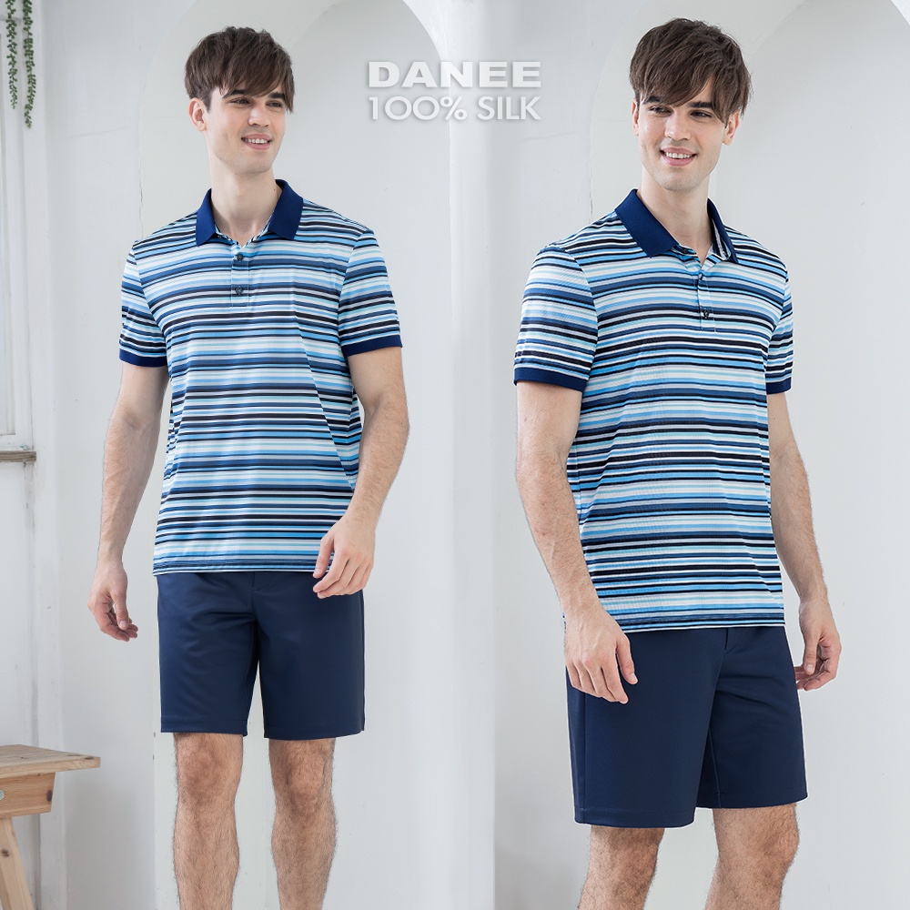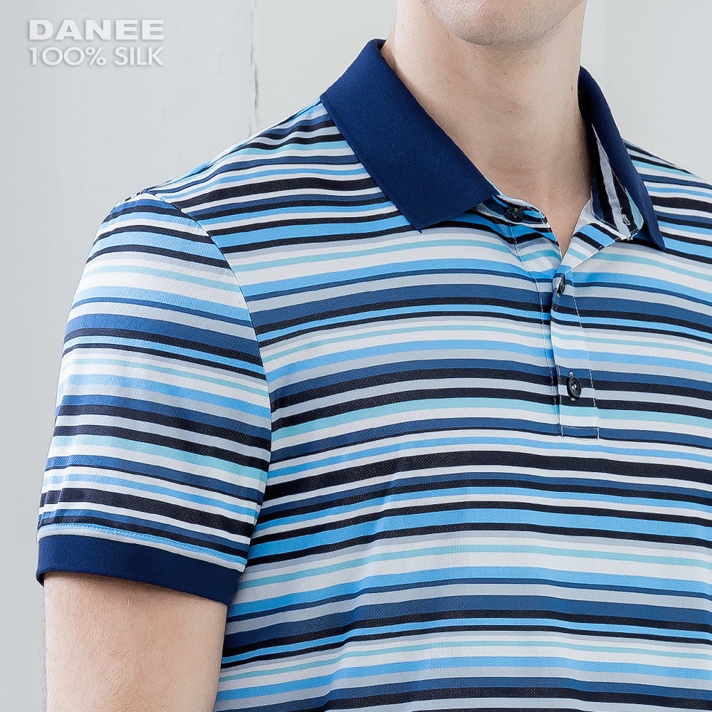 【岱妮蠶絲】吸濕排汗短袖鳳眼蠶絲男POLO衫-UML3BE02TR(灰藍橫條)