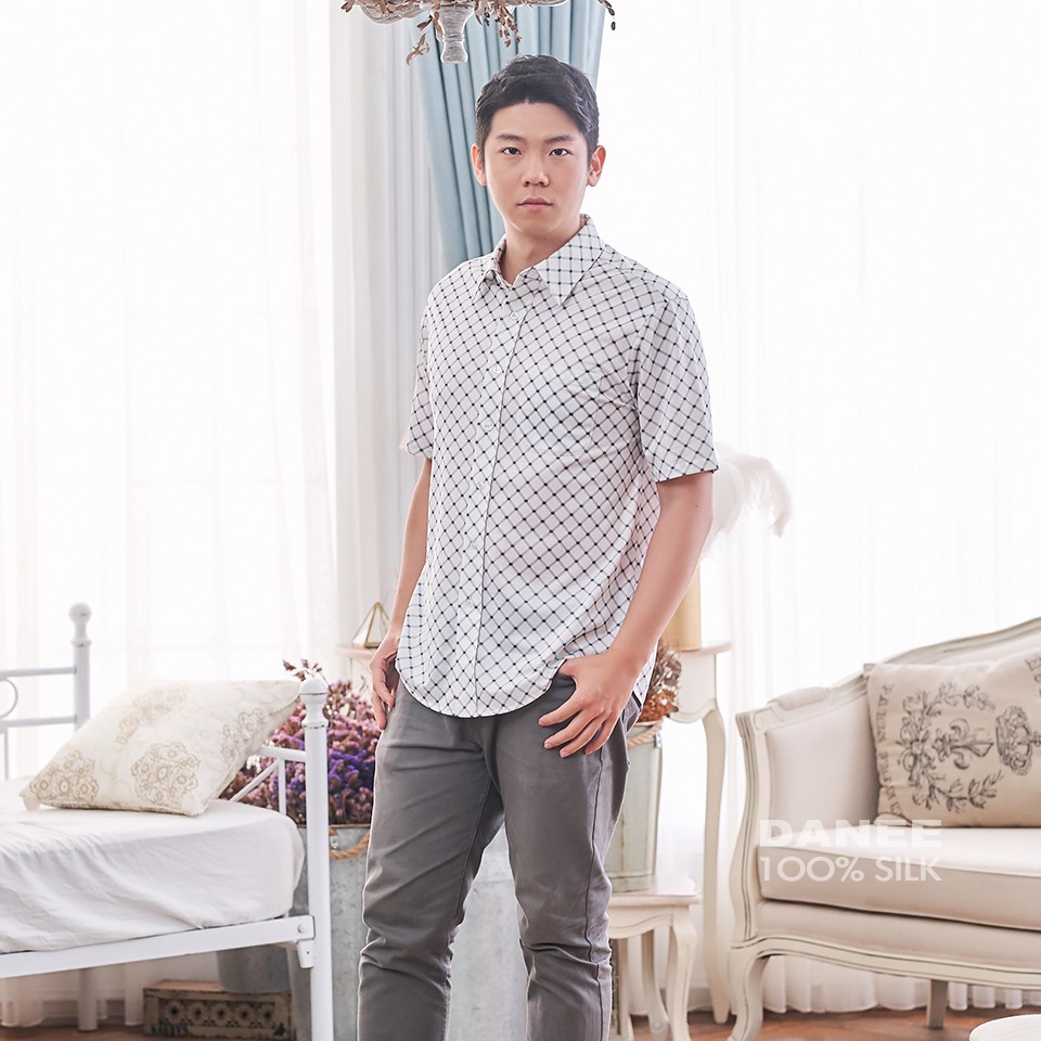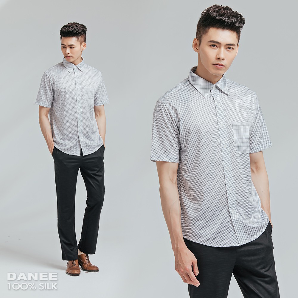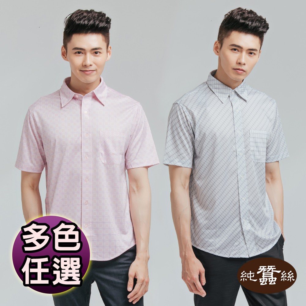 【岱妮蠶絲】時尚吸濕排汗圓領短袖男襯衫(多色可選)