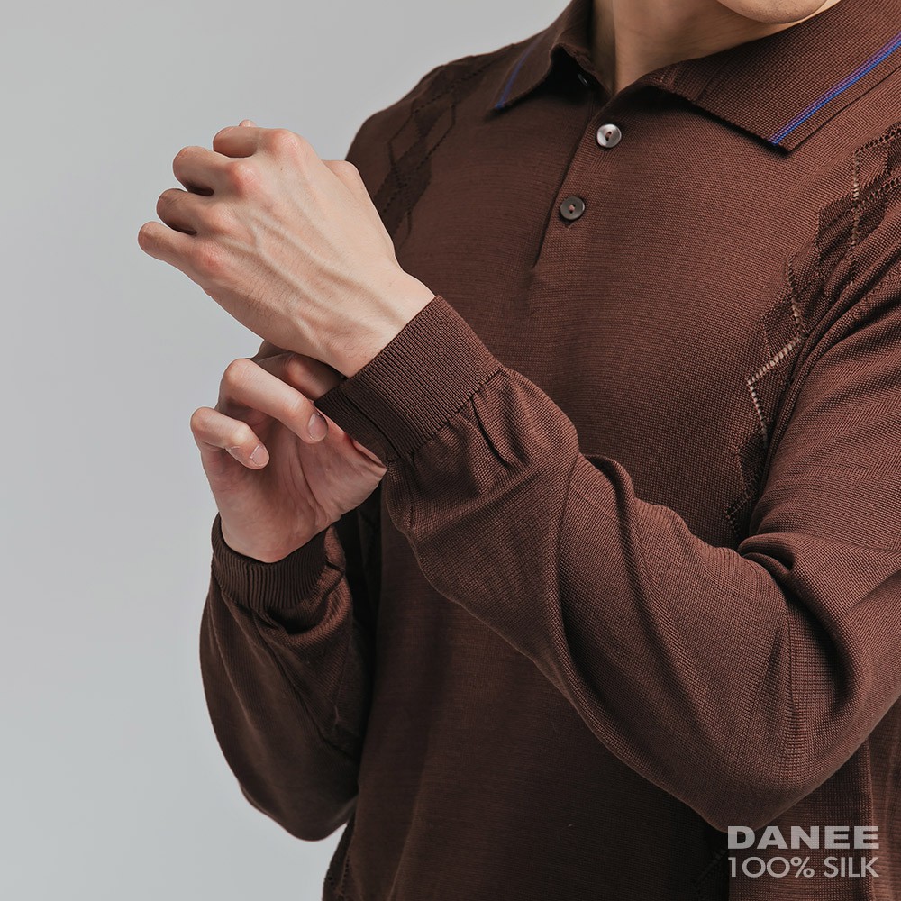 【岱妮蠶絲】菱格紋緹花長袖男POLO衫(二色可選)