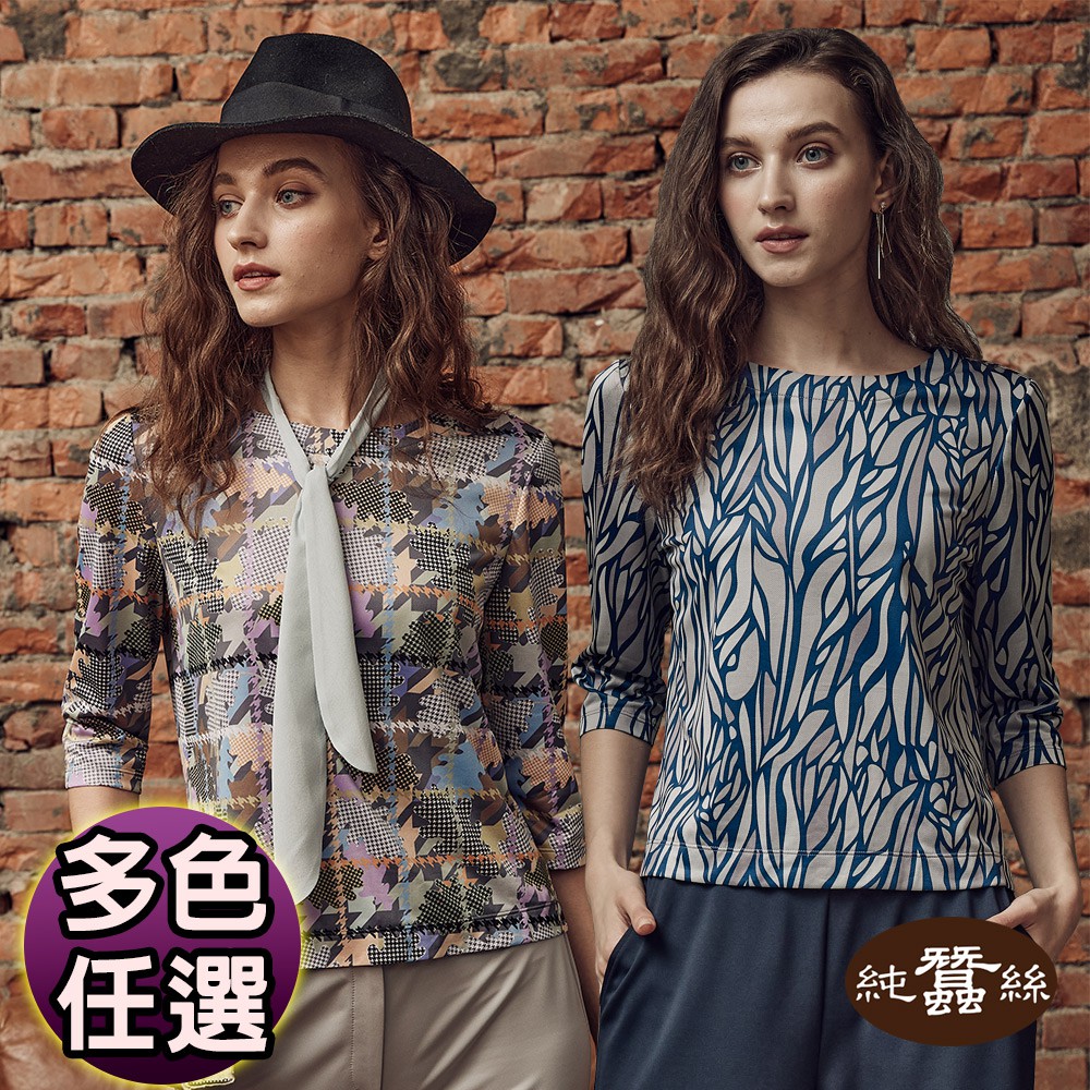 【岱妮蠶絲】舒適蠶絲鳳眼女短版七分袖上衣(三色可選)