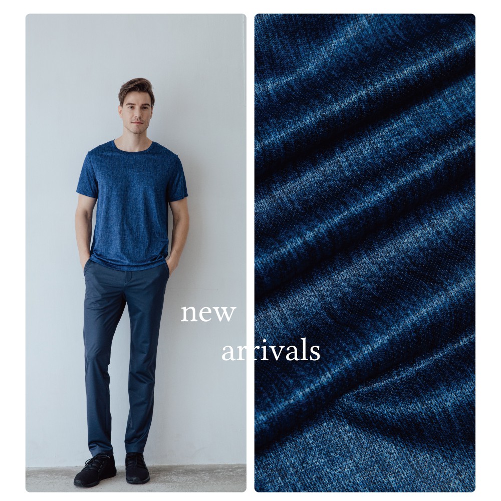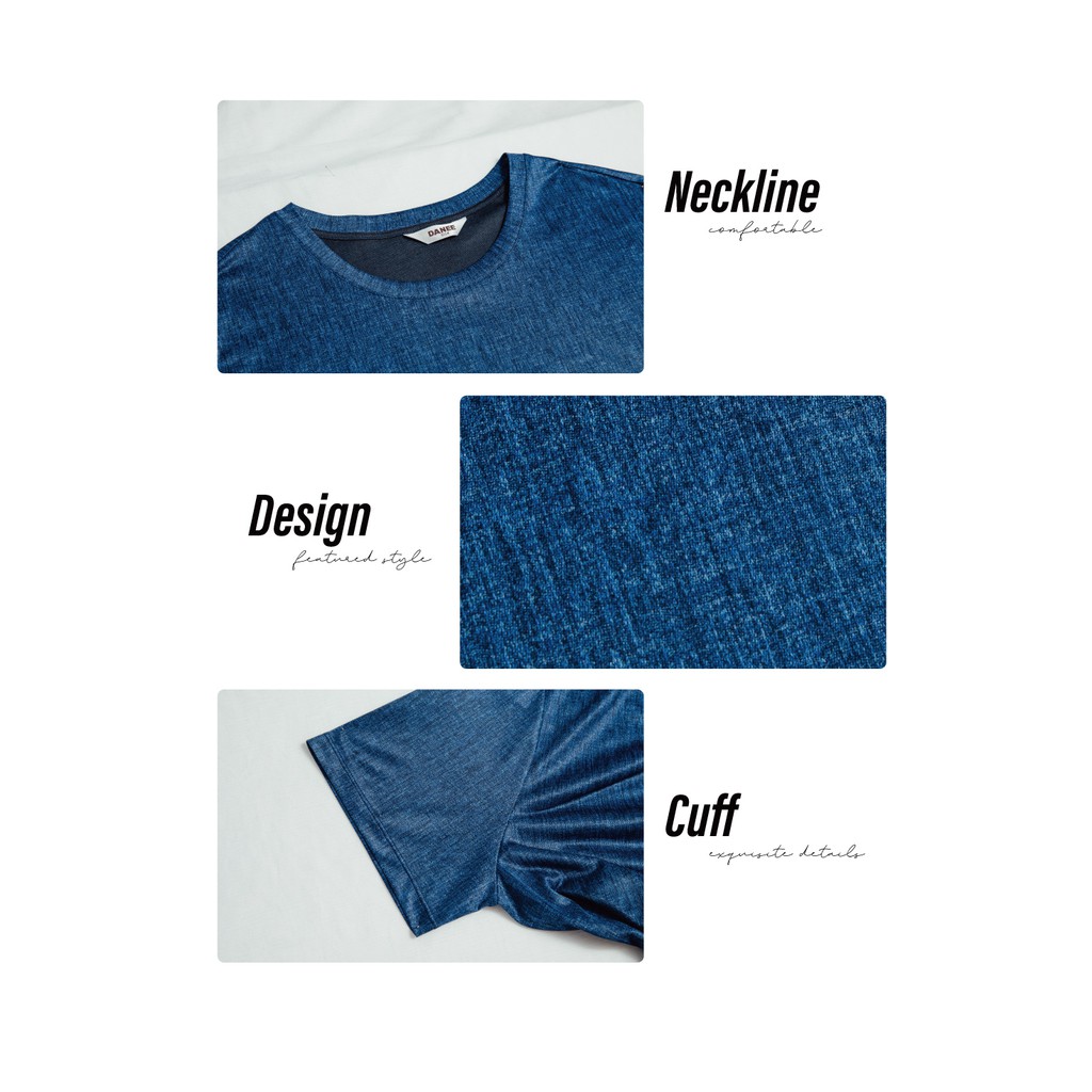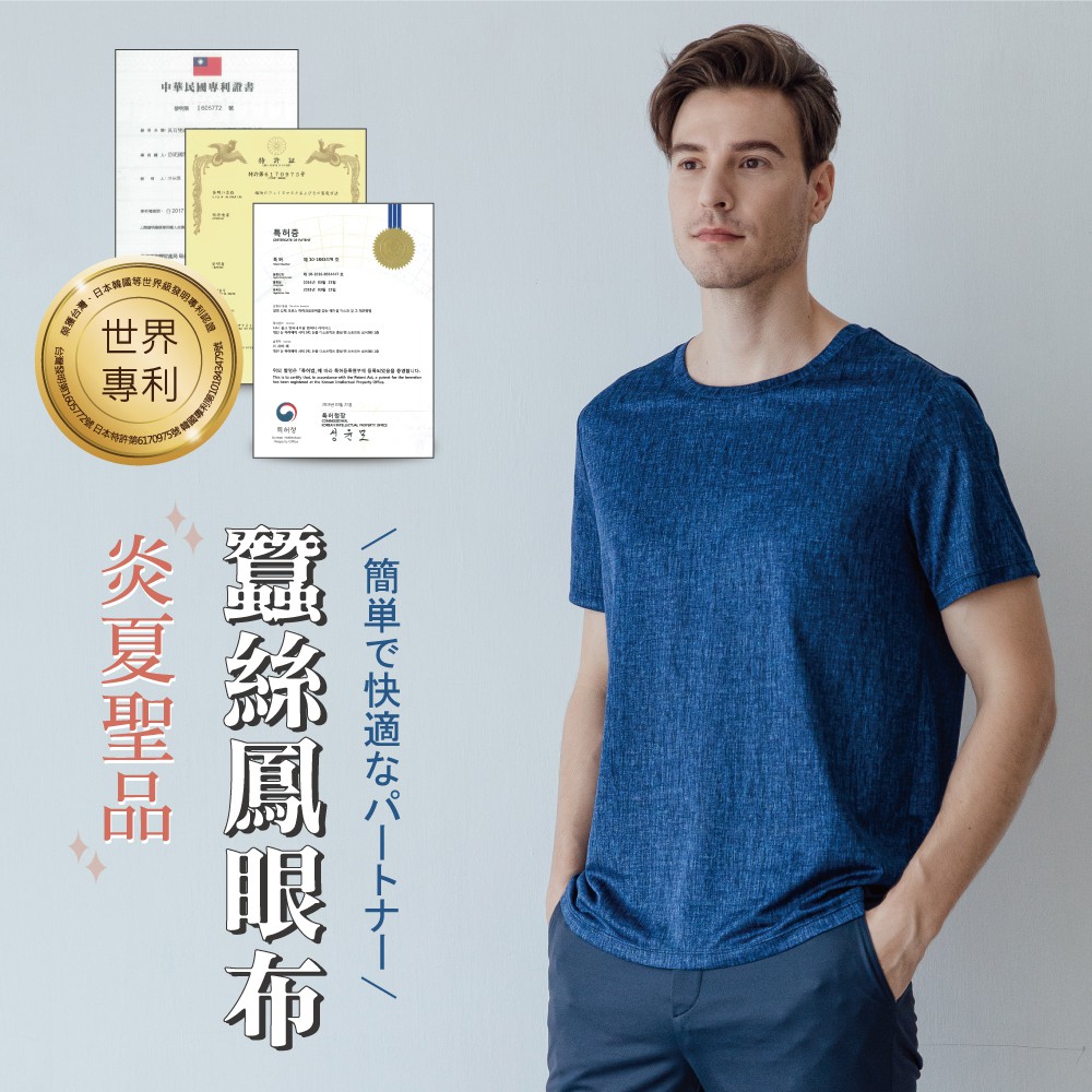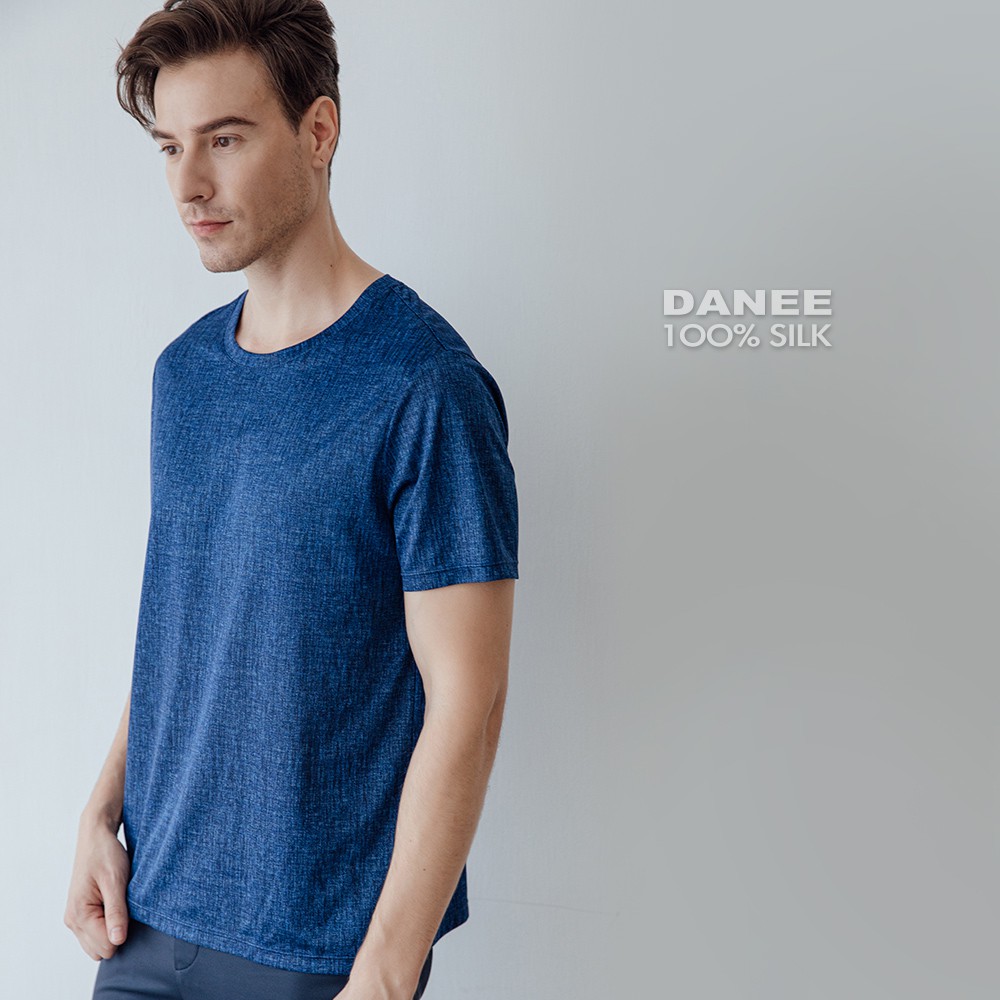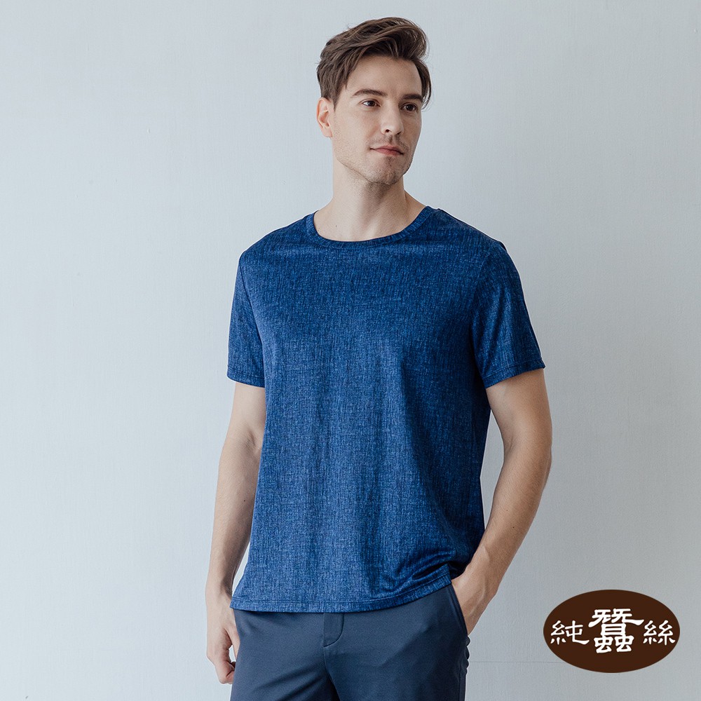 【岱妮蠶絲】透氣舒適男蠶絲鳳眼圓領上衣-SML3BA03VQ(藍黑丹寧)