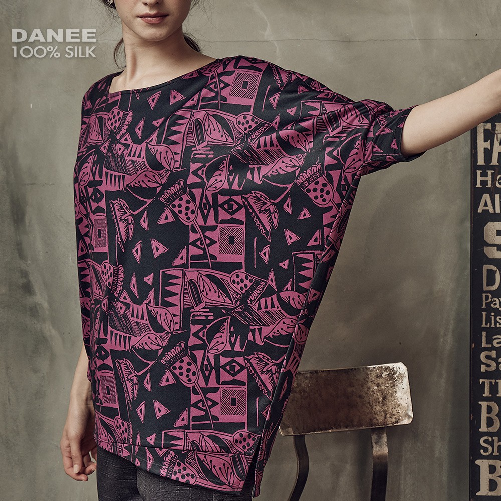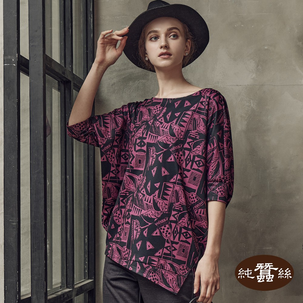 【岱妮蠶絲】舒適落肩寬版五分袖蠶絲上衣