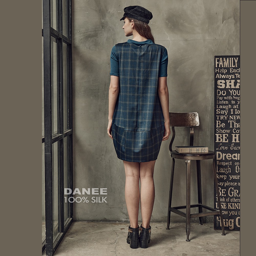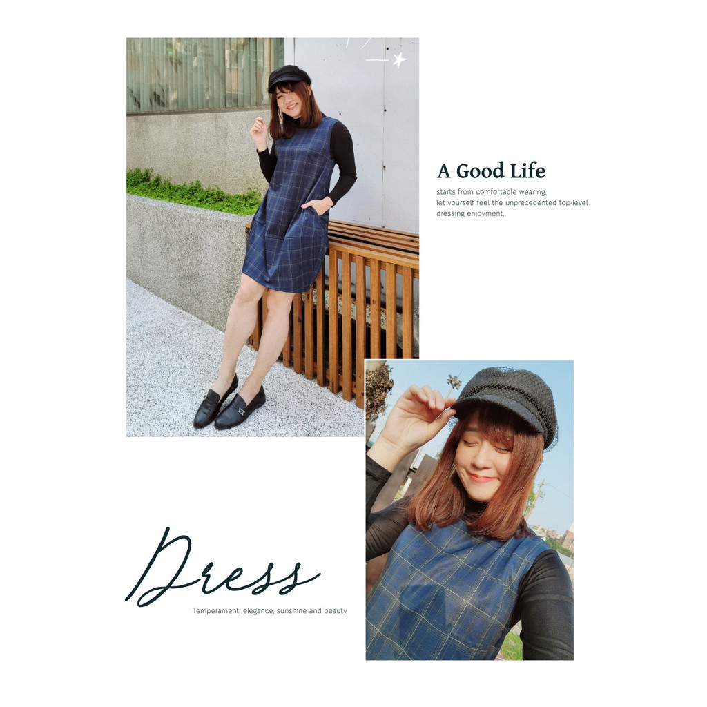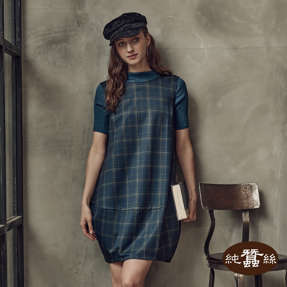 【岱妮蠶絲】黃金格無袖造型下襬洋裝