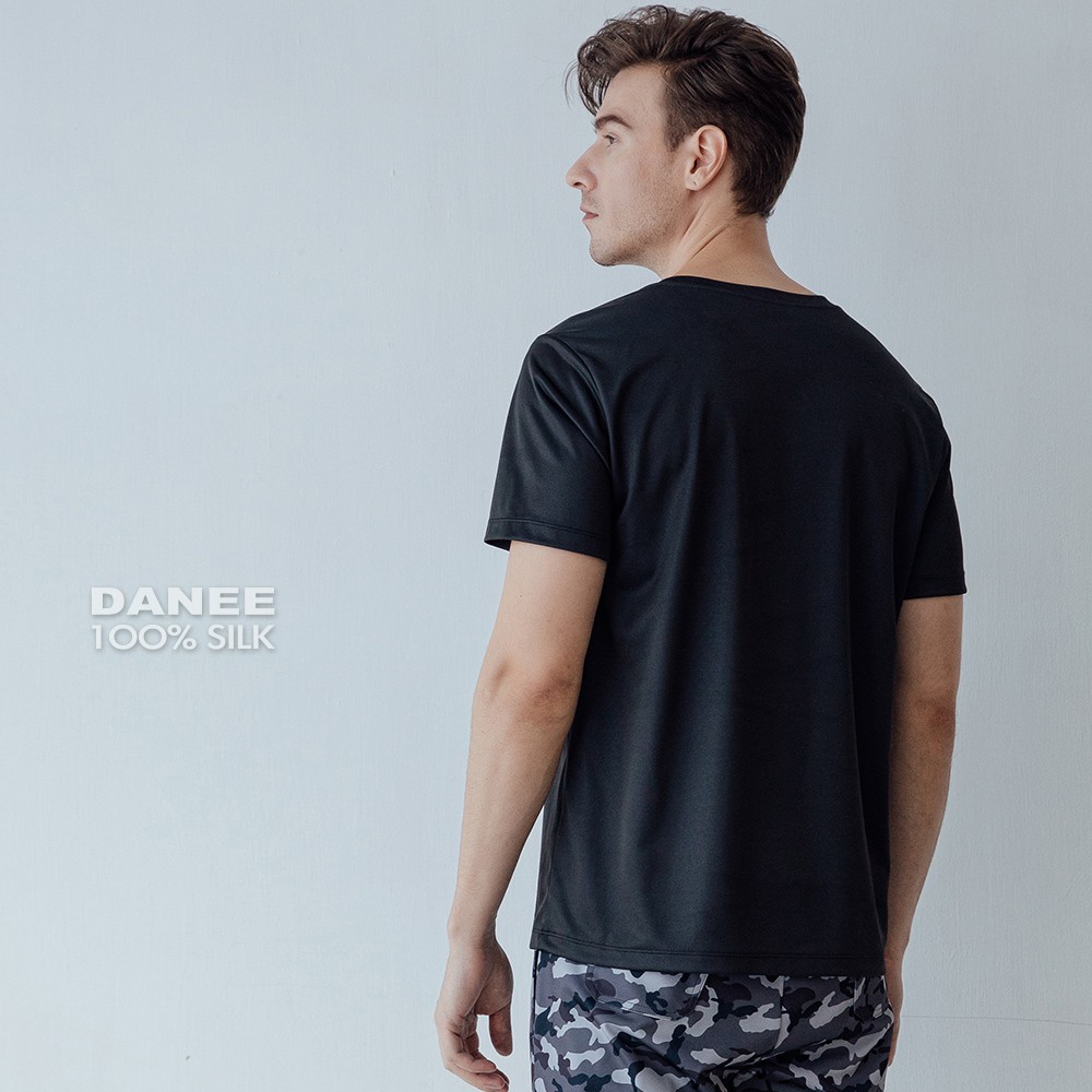 【岱妮蠶絲】透氣舒適男蠶絲鳳眼V領上衣-SML3BJ026A(黑蔚藍)