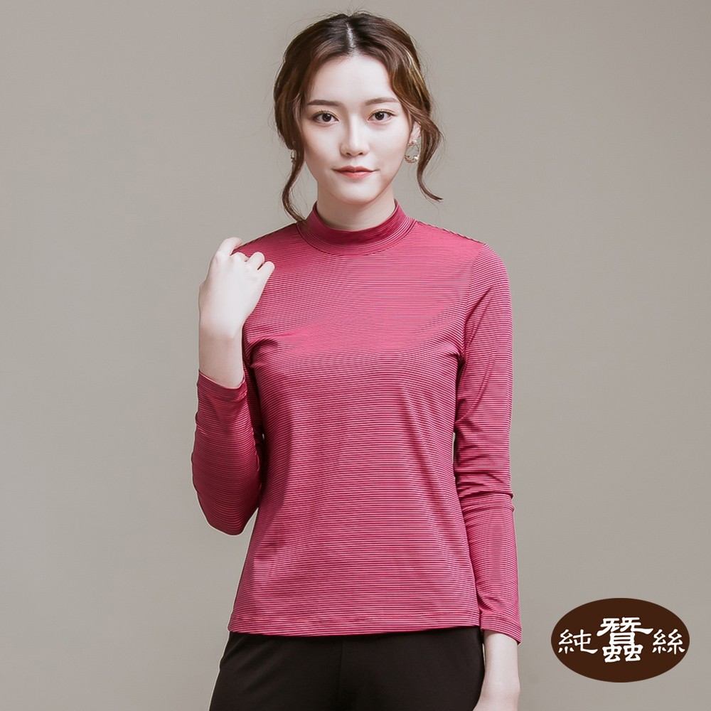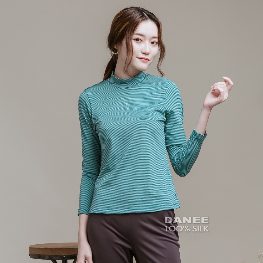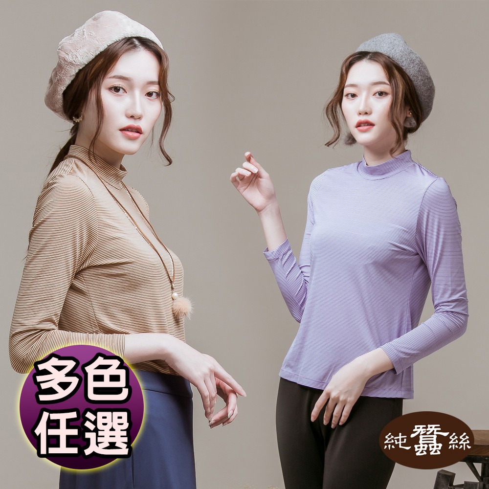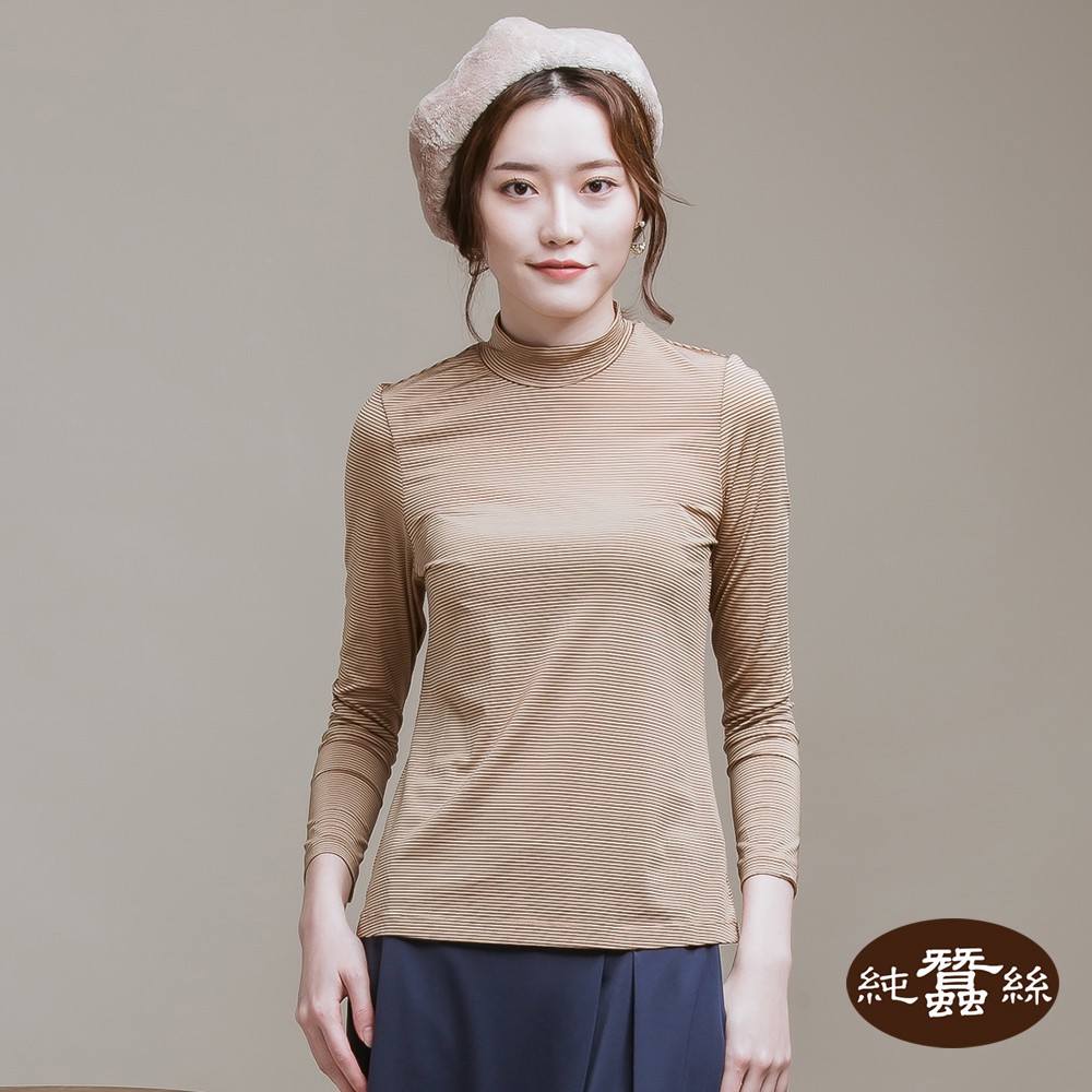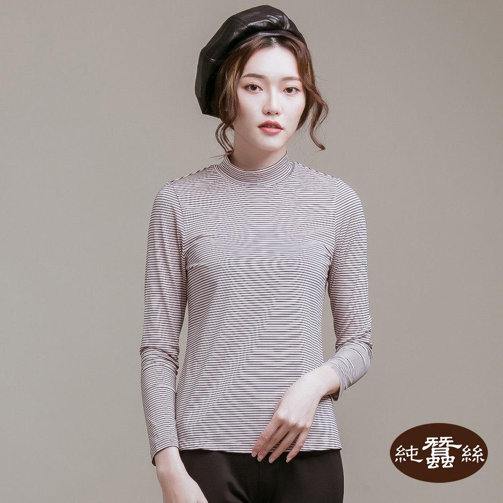 【岱妮蠶絲】立領色織條紋長袖上衣(多色可選)
