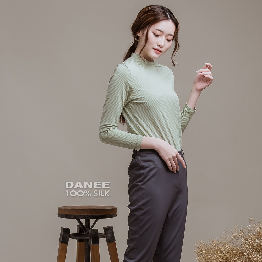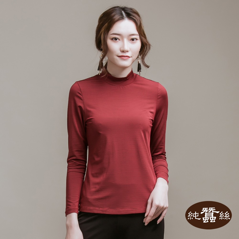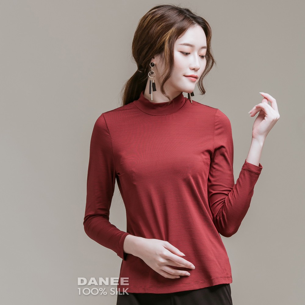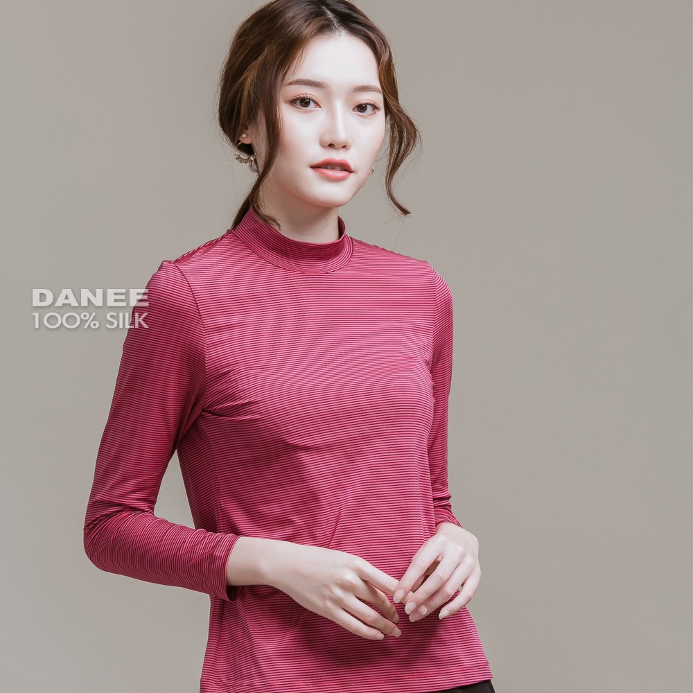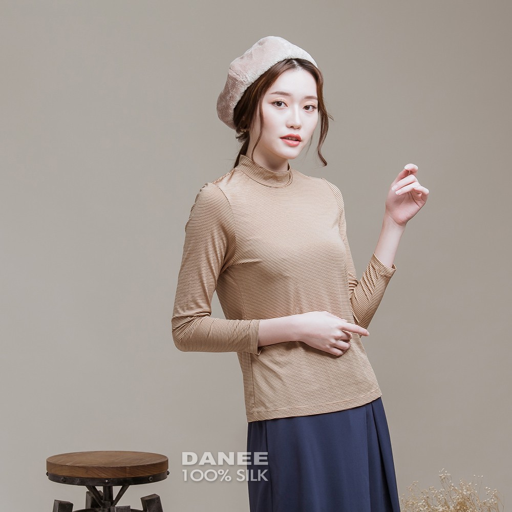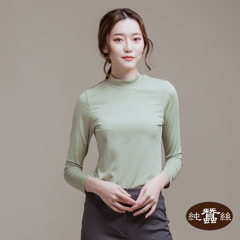 【岱妮蠶絲】立領色織條紋長袖上衣(多色可選)