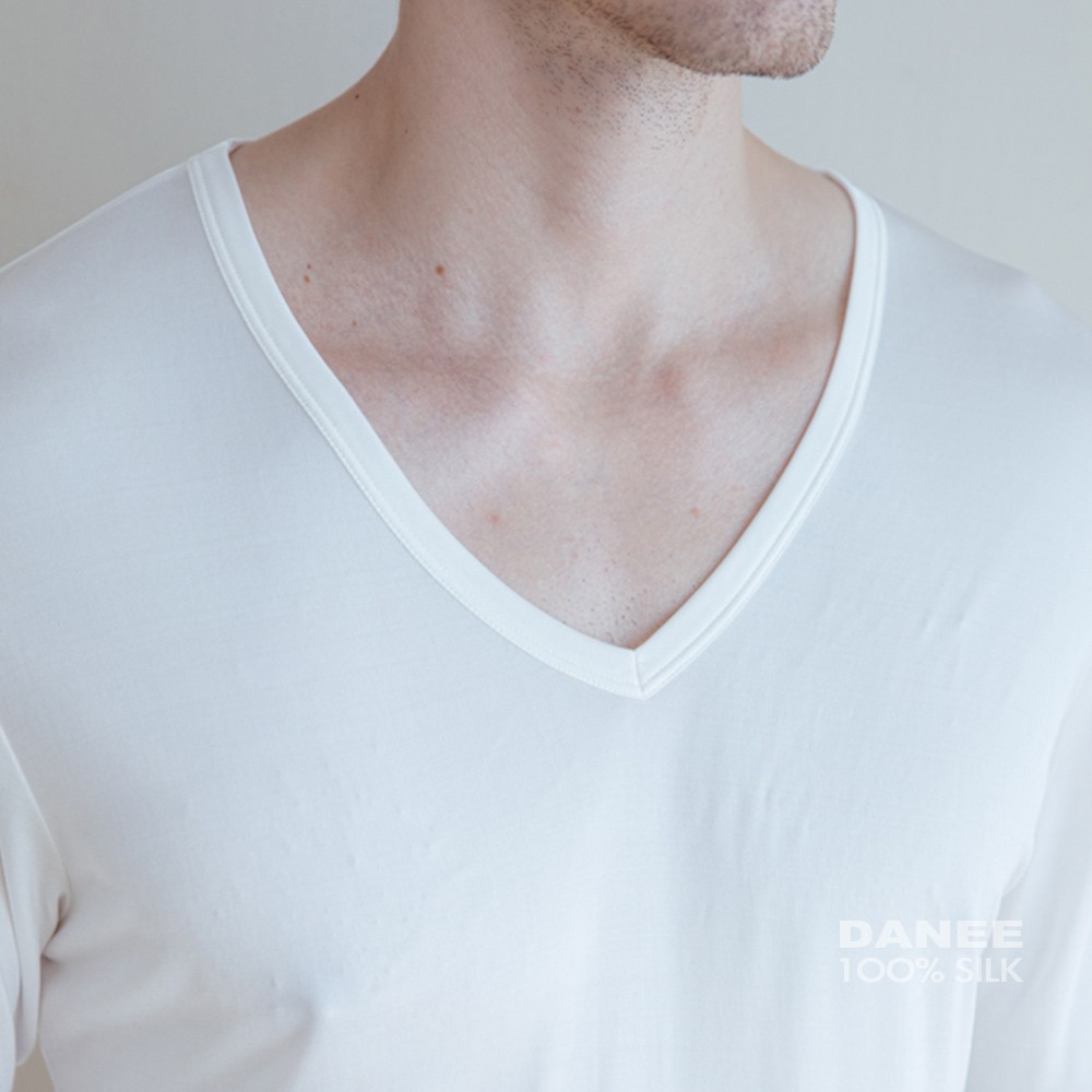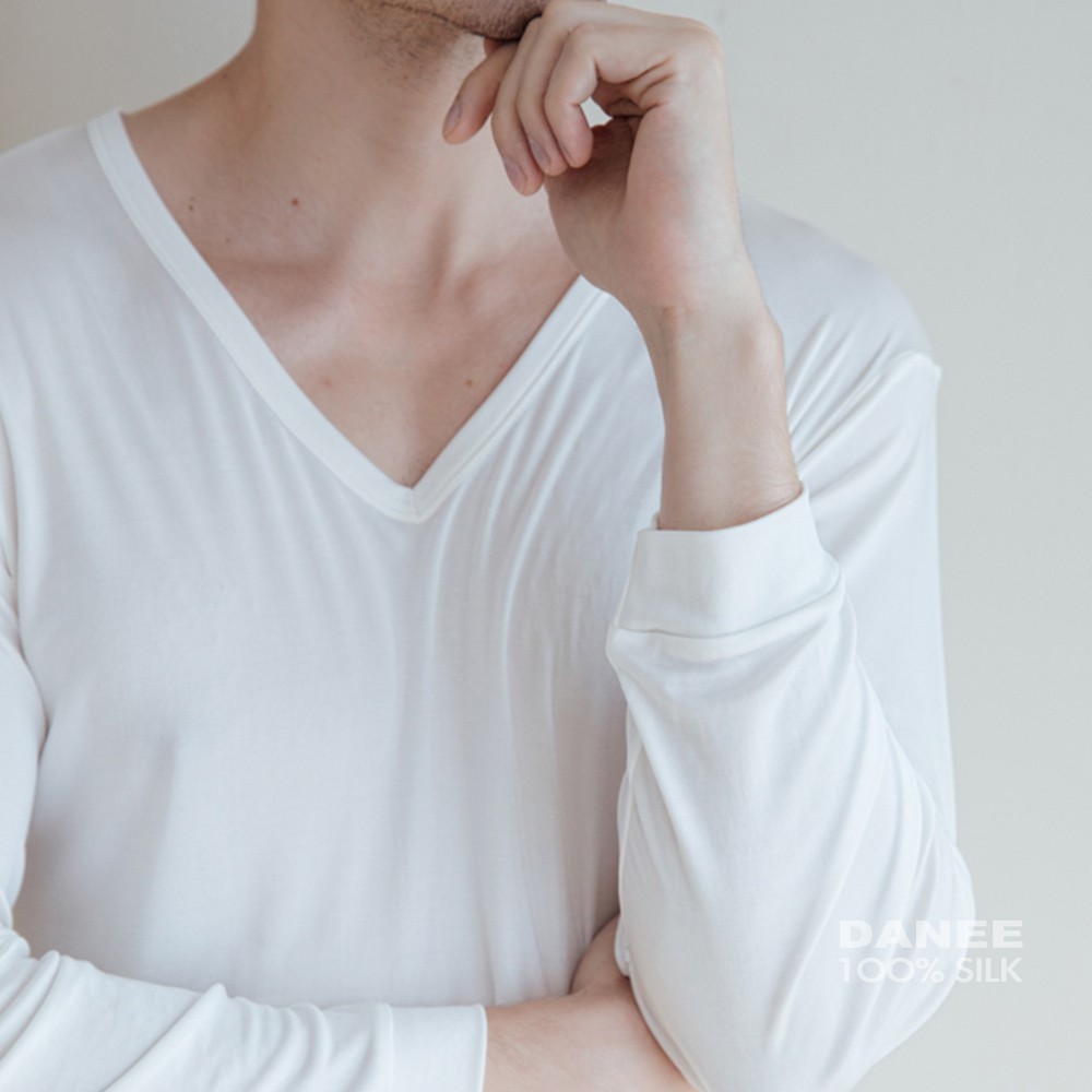 【岱妮蠶絲】純蠶絲42針110G長袖V領男衛生衣