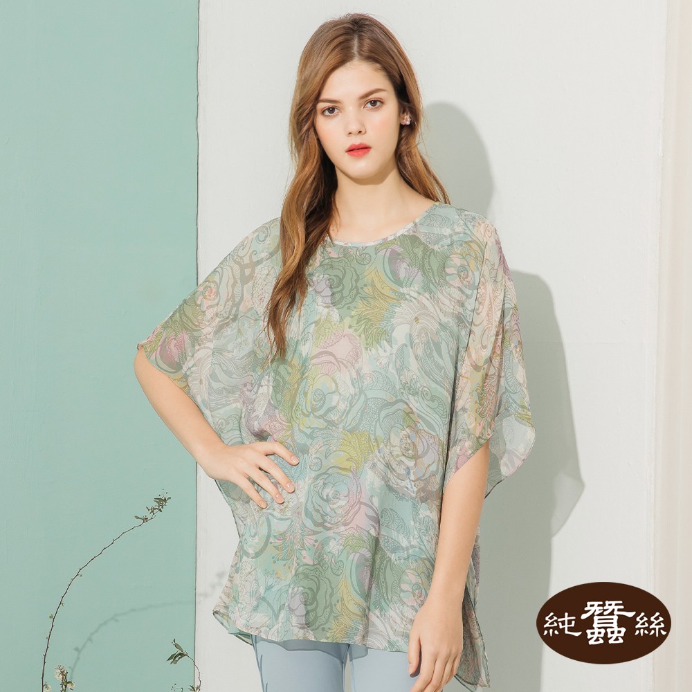 【岱妮蠶絲】純蠶絲喬其紗柔美流行大梯形上衣-LWL41401(多款任選)