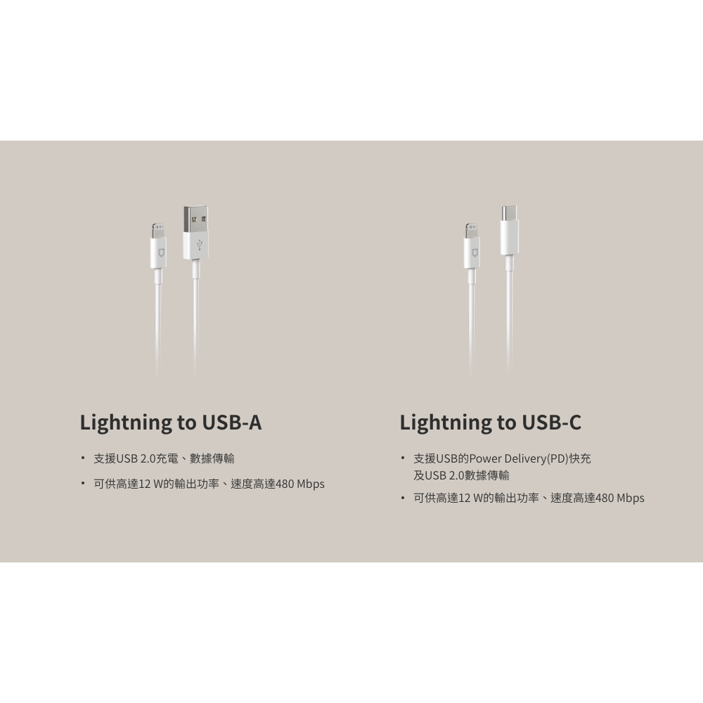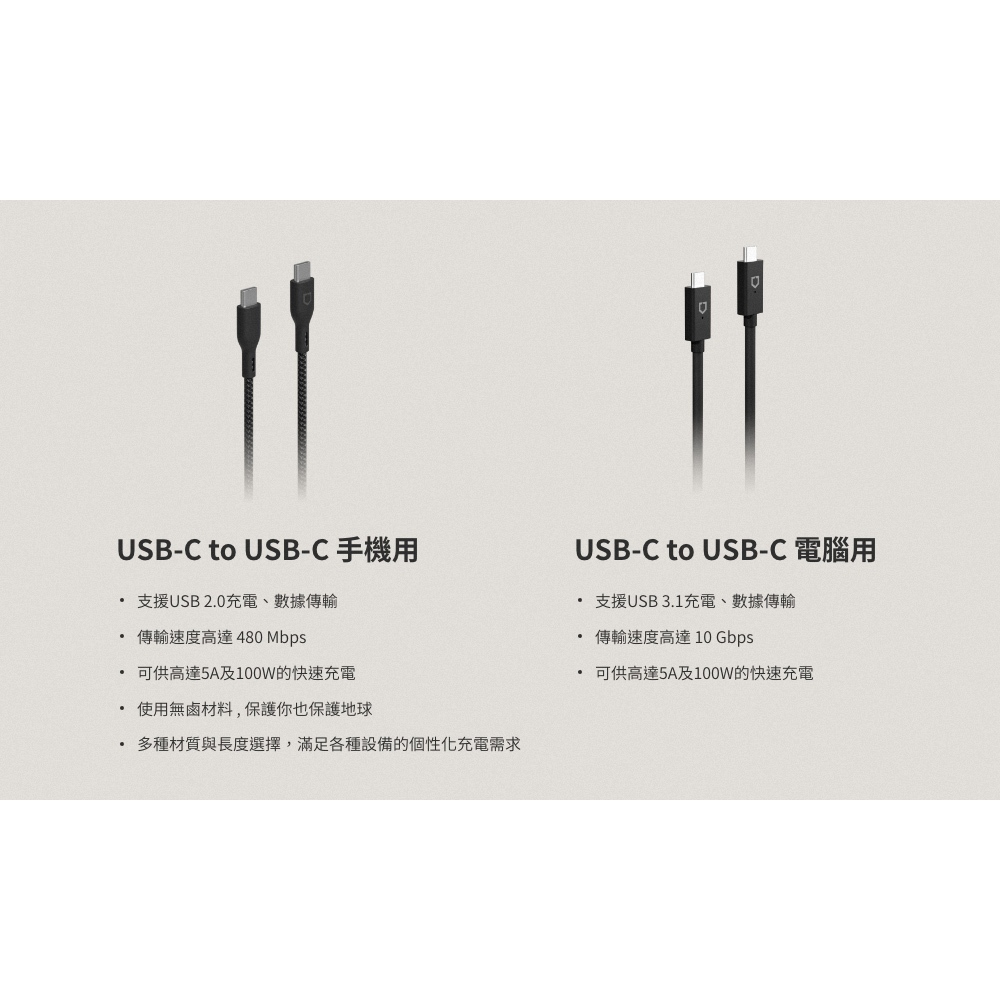 犀牛盾 USB-C to USB-C 白色傳輸線/充電線(1公尺/2公尺)