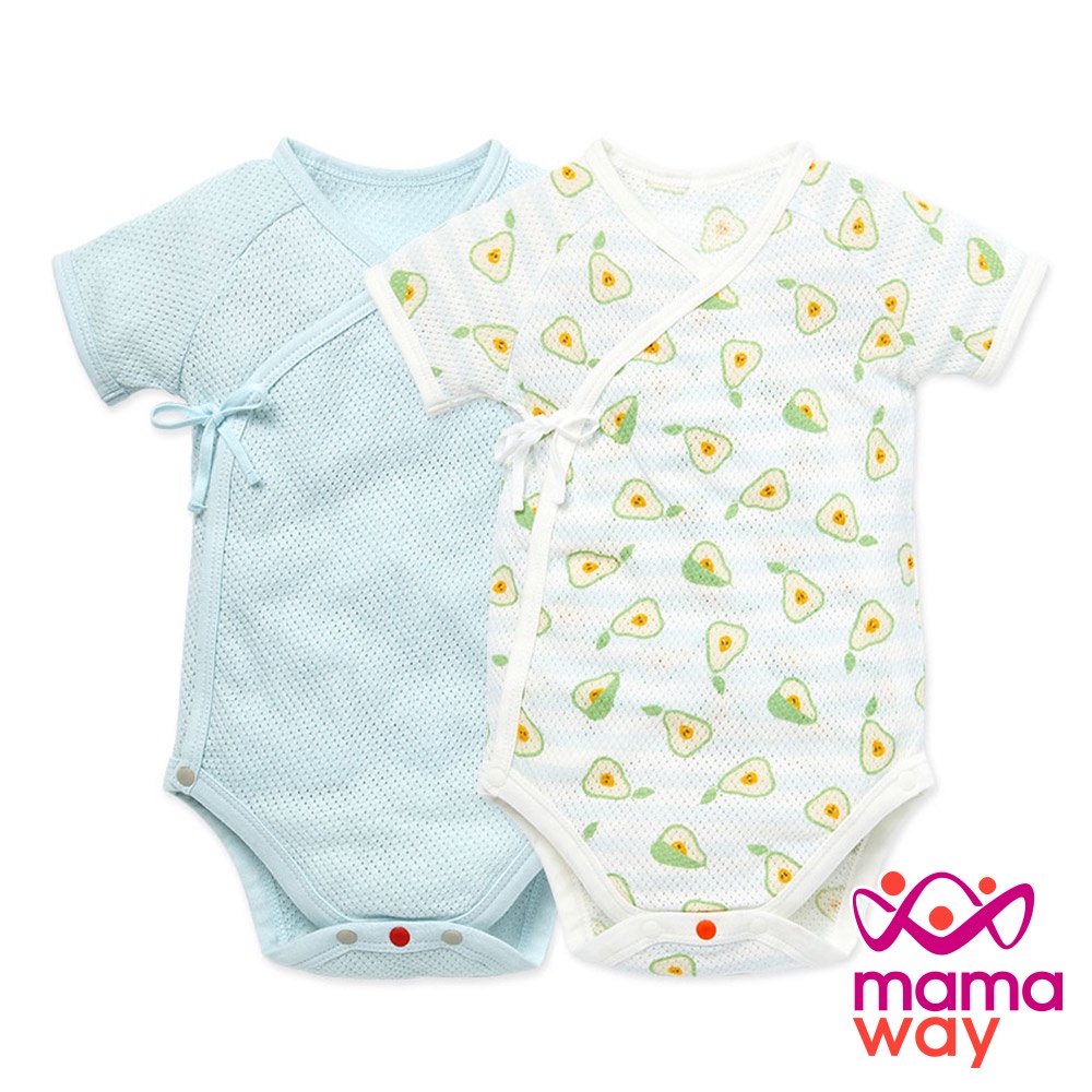 【mamaway媽媽餵】 新生兒純棉 網眼 包屁衣(2入)-西瓜/柳丁/西洋梨