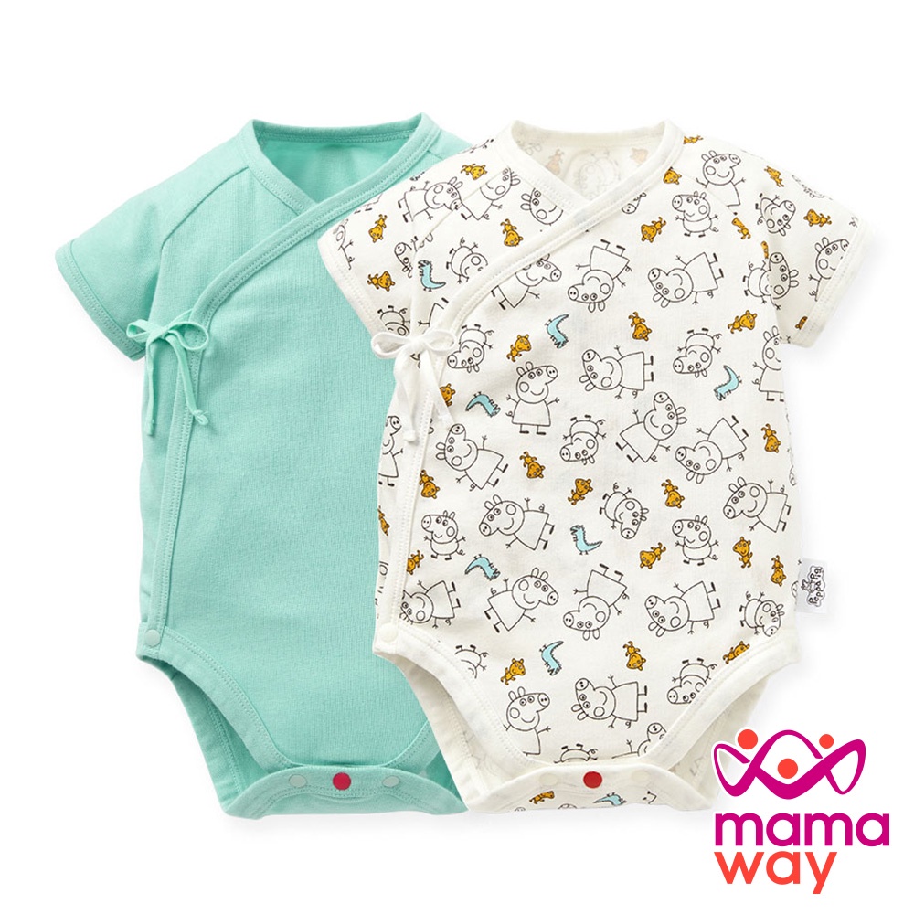 【mamaway媽媽餵】 新生兒Q彈棉質包屁衣(2入)-線稿佩佩豬