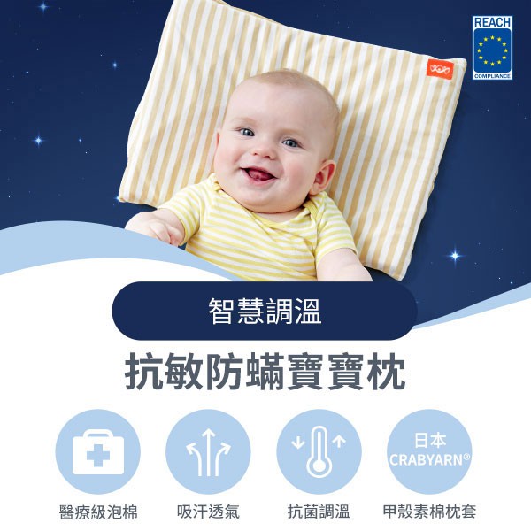 【Mamaway媽媽餵】敷料親膚棉嬰兒寶寶枕(枕心x1+枕套x1) 防螨枕頭 嬰兒枕頭 嬰幼兒 智慧恆溫