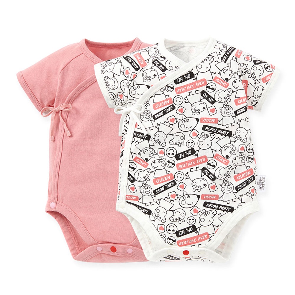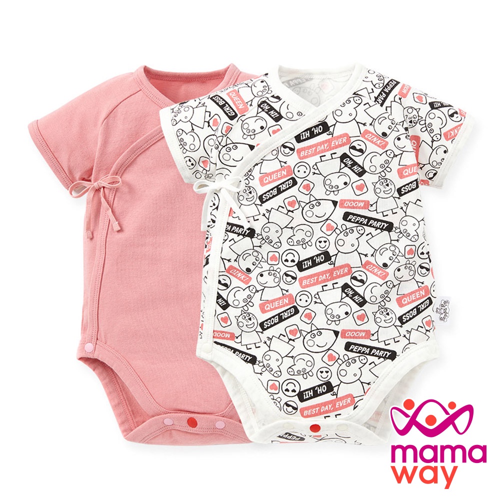 【mamaway媽媽餵】 新生兒Q彈棉質包屁衣(2入)-標籤佩佩豬