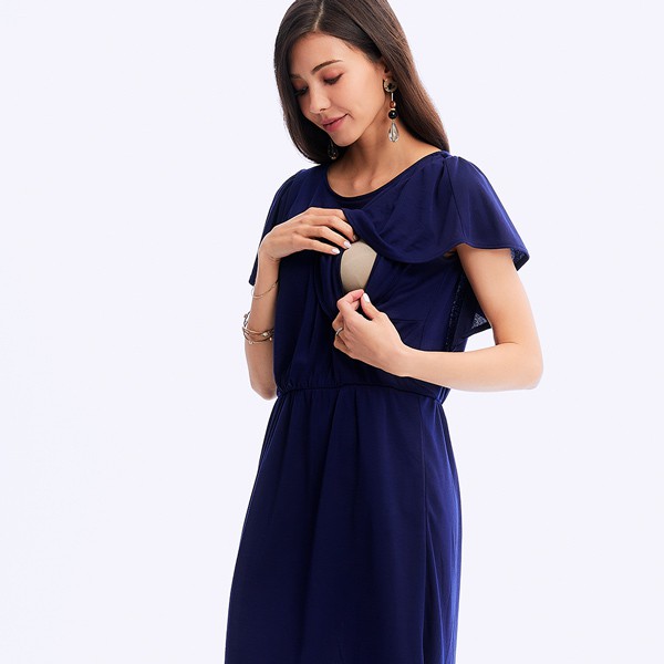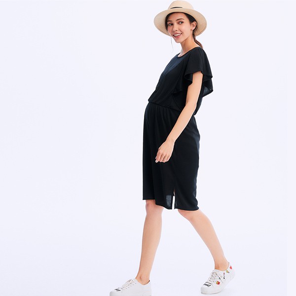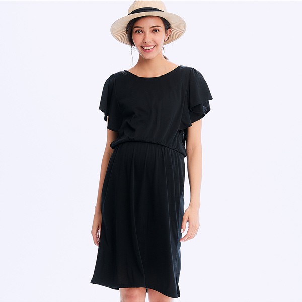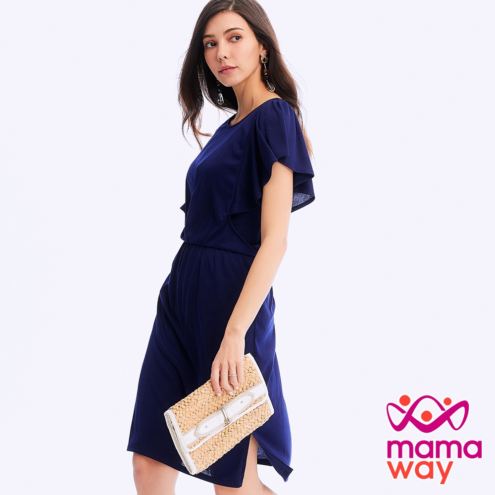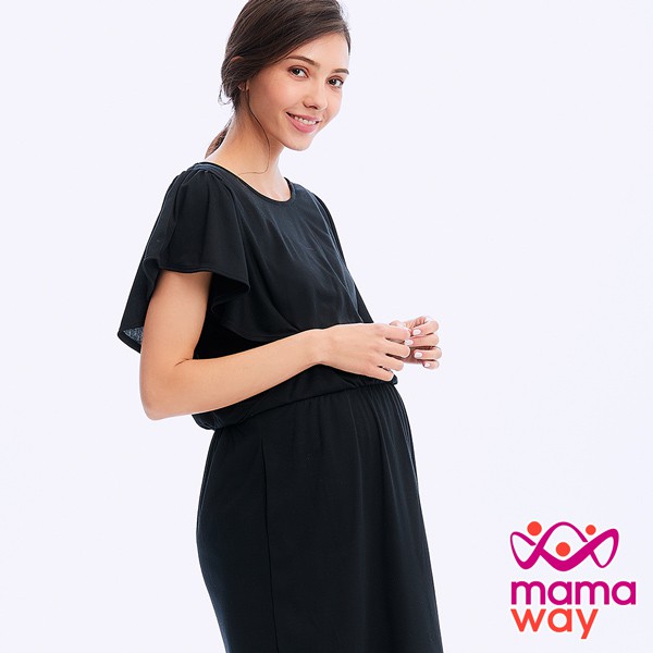 【mamaway 媽媽餵】簡約風荷葉袖孕哺洋裝(共2色) 春夏新品 孕婦洋裝 孕婦裝 新價格 品質不變