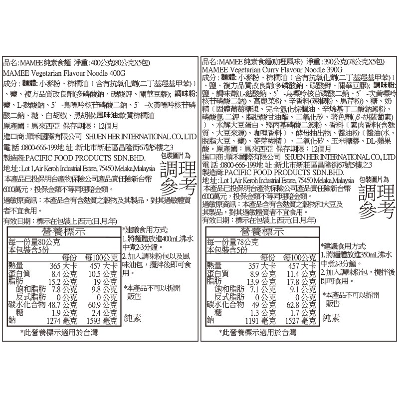 MAMEE 純素食麵/MAMEE 純素食麵(咖哩風味) 現貨 蝦皮直送