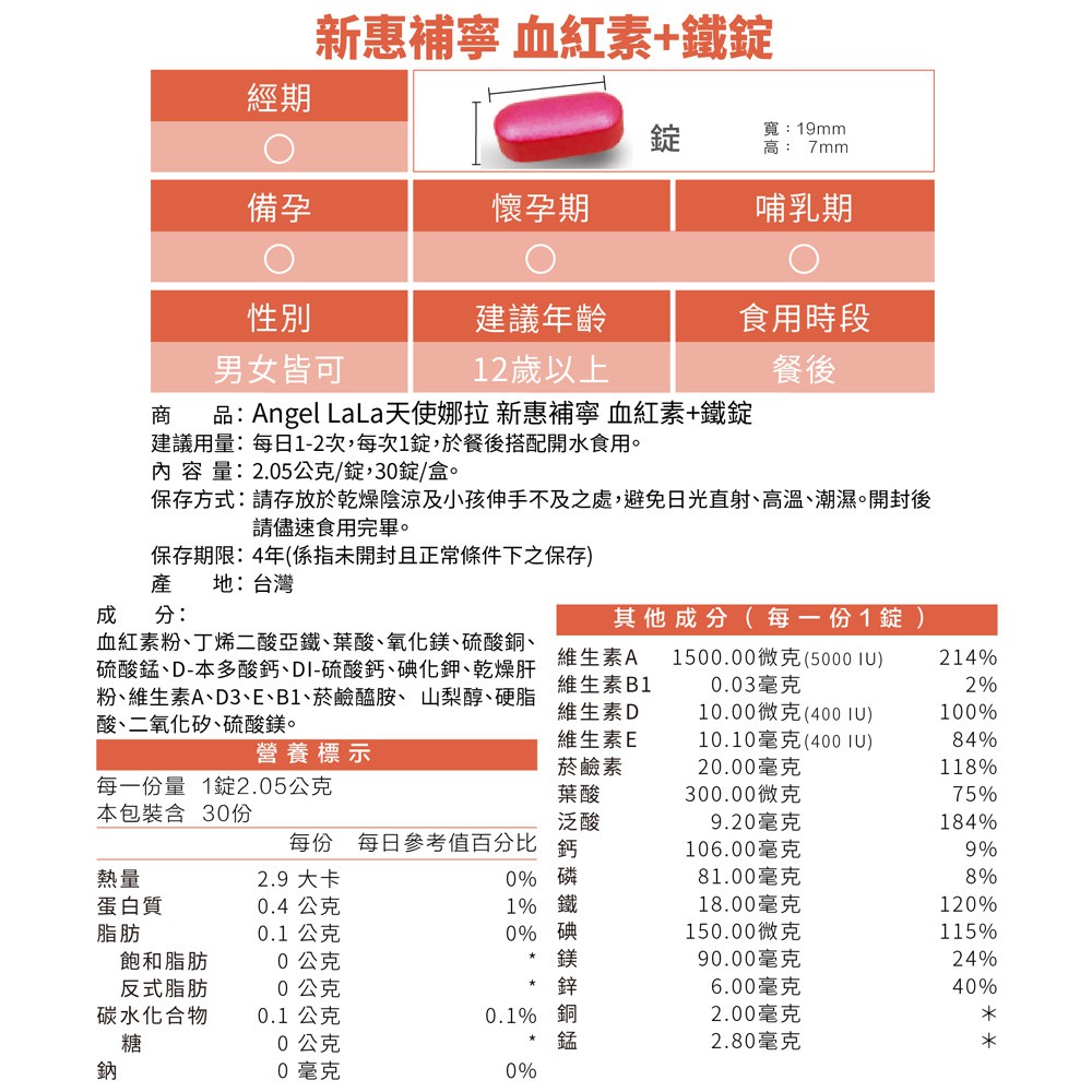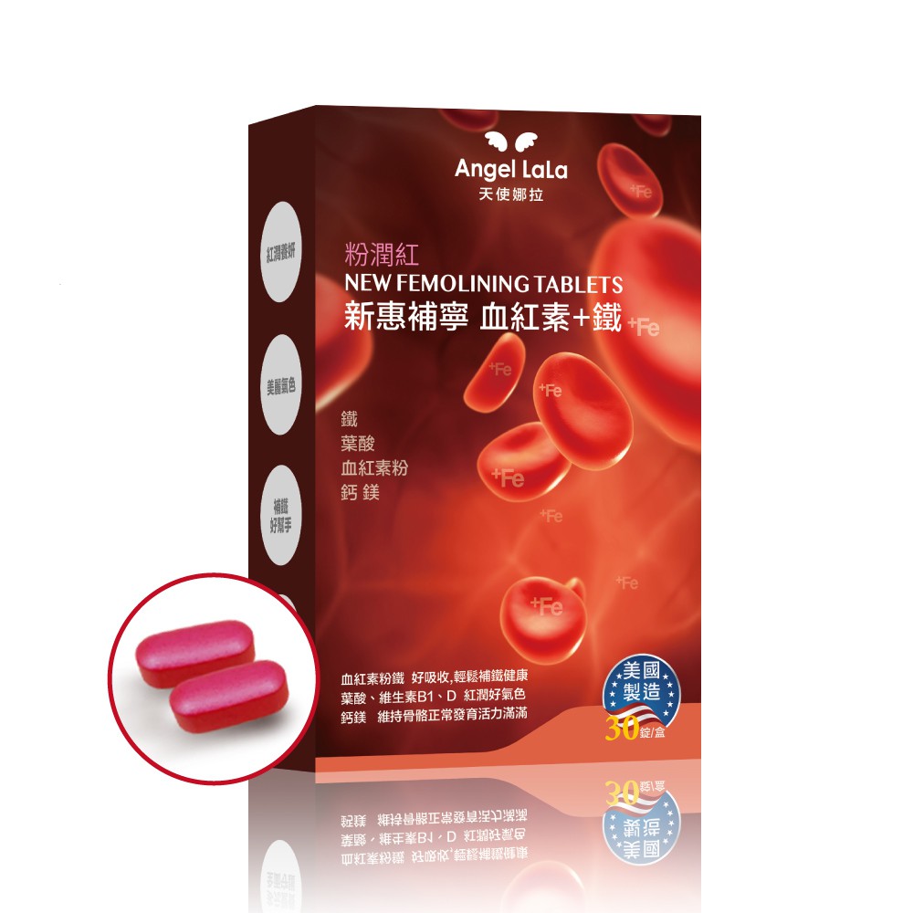 Angel LaLa天使娜拉 新惠補寧 粉潤紅血紅素+鐵錠 30錠/盒 血紅素/鐵/葉酸/鈣/鎂 補充鐵質 現貨蝦皮直送