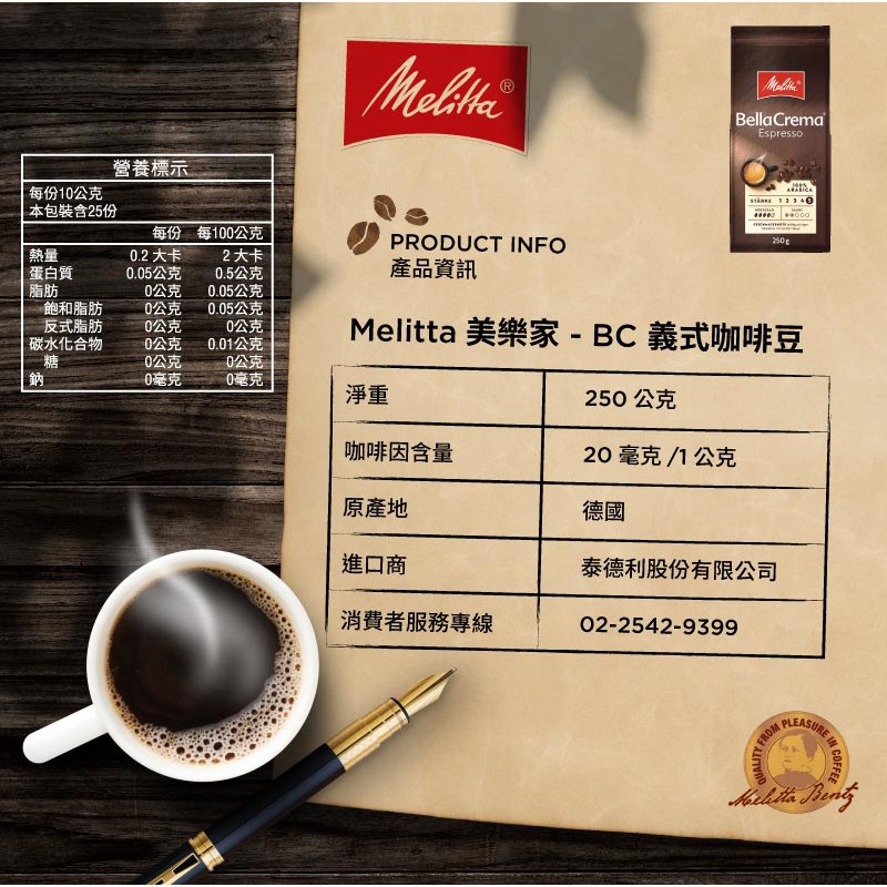Melitta 德國美樂家 BC義式咖啡豆 (250g) 蝦皮直送 現貨