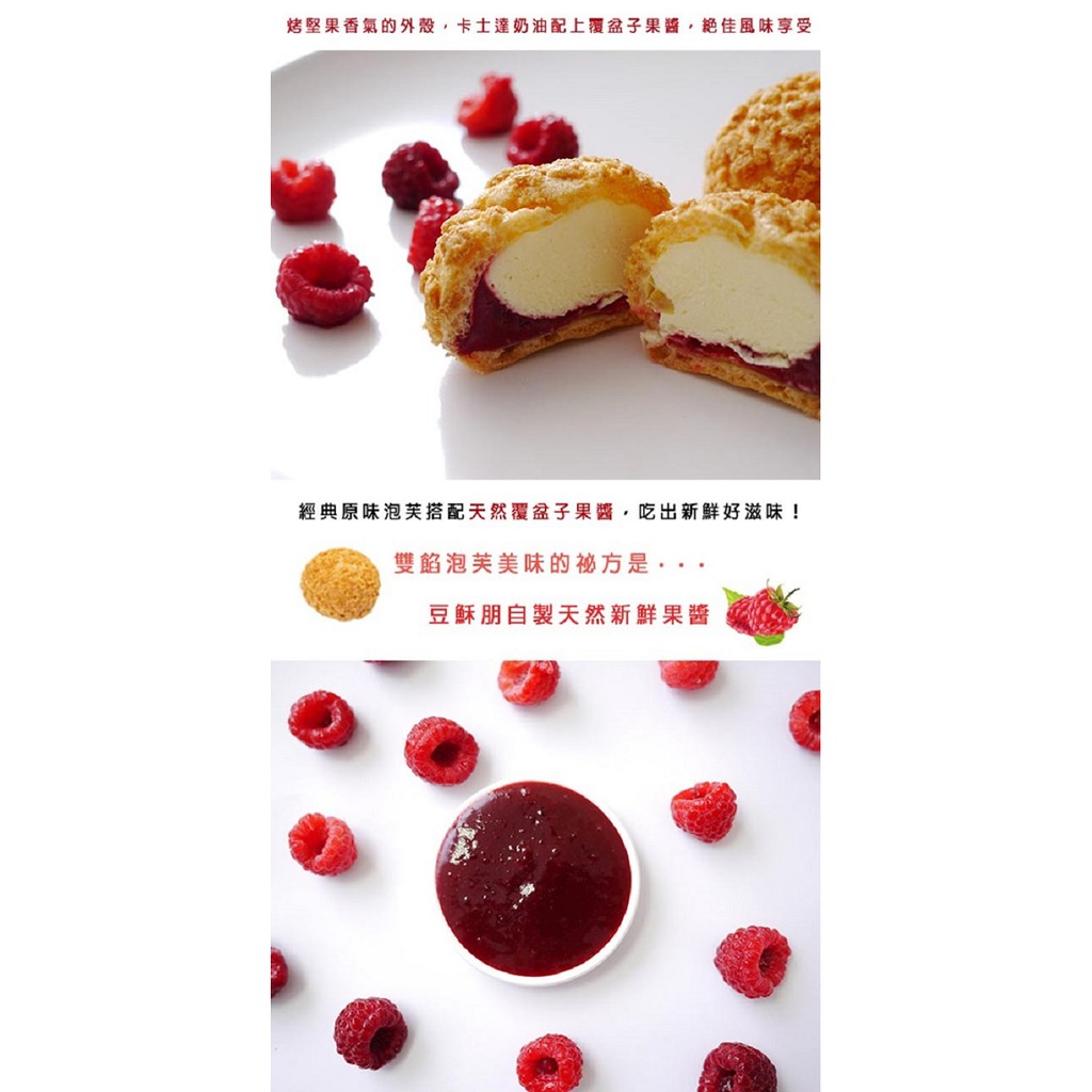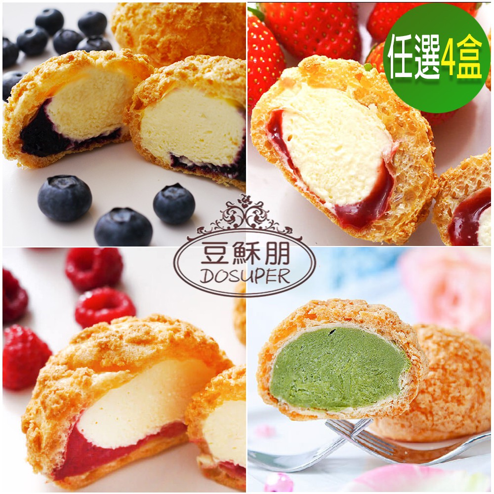 豆穌朋 雙餡泡芙/抹茶泡芙任選4盒(單餡抹茶/雙餡藍莓/雙餡草莓/雙餡覆盆子)冰淇淋 甜點(6入/盒)廠商直送