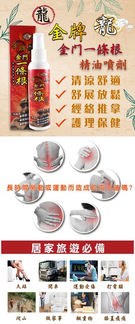 龍 金牌金門一條根精油噴劑 120ml 舒緩安撫 增進循環 按摩適用 現貨 蝦皮直送