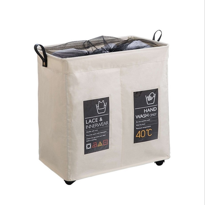 束口髒衣籃-附輪-雙格款 脏衣籃 玩具收納桶 折疊收納箱 免運費 現貨 廠商直送