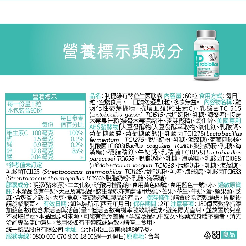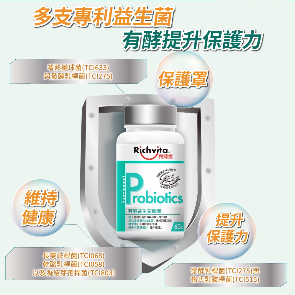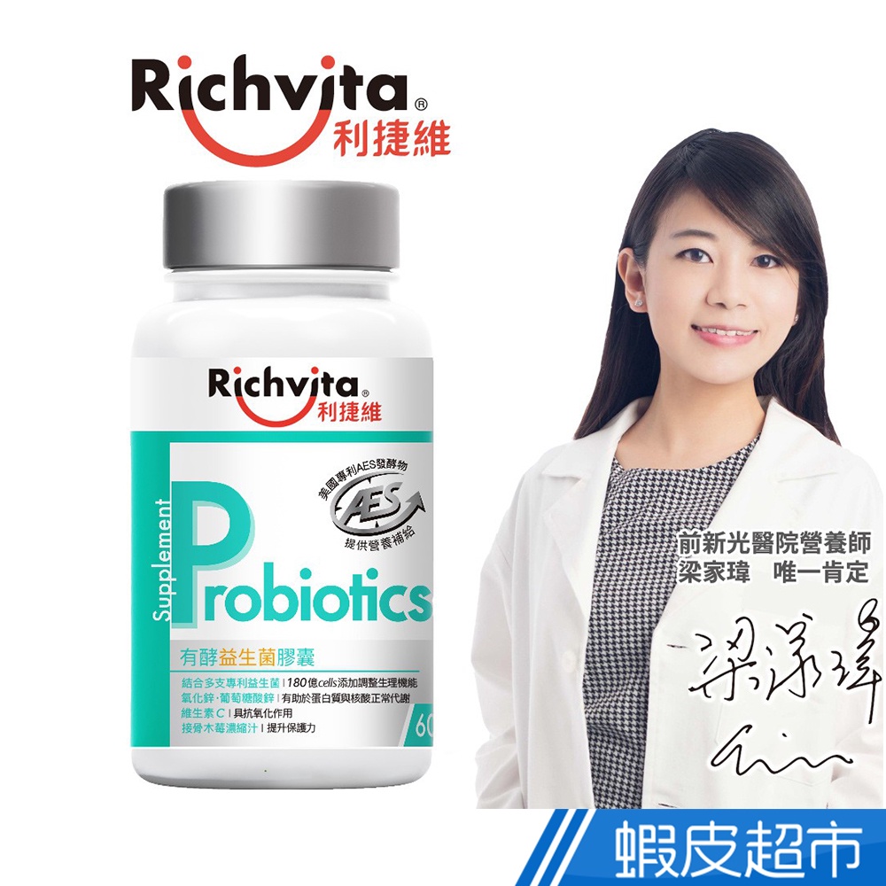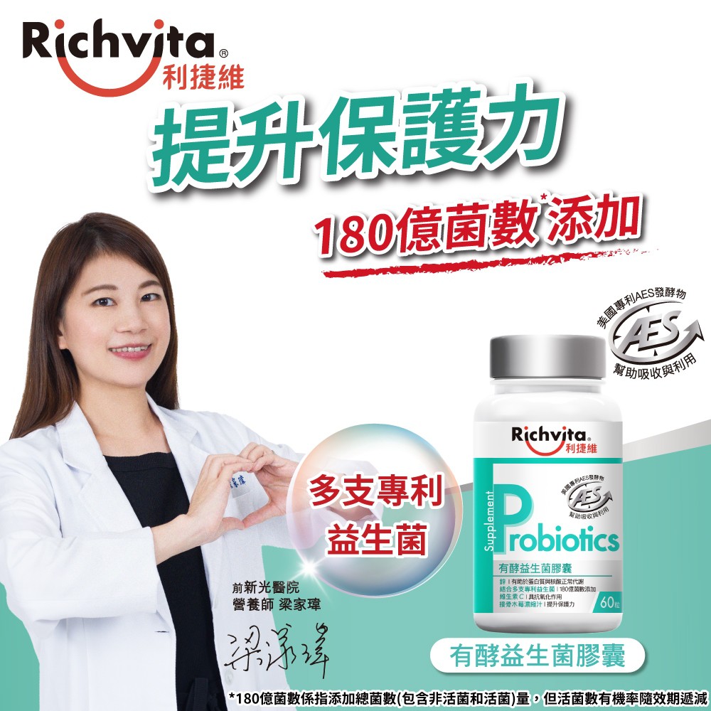 Richvita利捷維 有酵益生菌膠囊 60粒/瓶 多入組 梁家瑋營養師推薦 180億益生菌 提升保護力 現貨 廠商直送