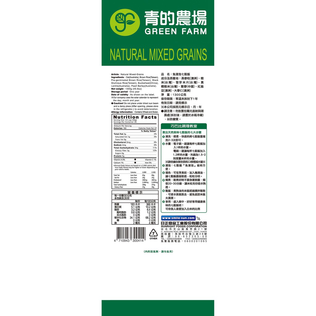 【青的農場】免浸免泡七穀飯1300G 蝦皮超市 現貨 蝦皮直送