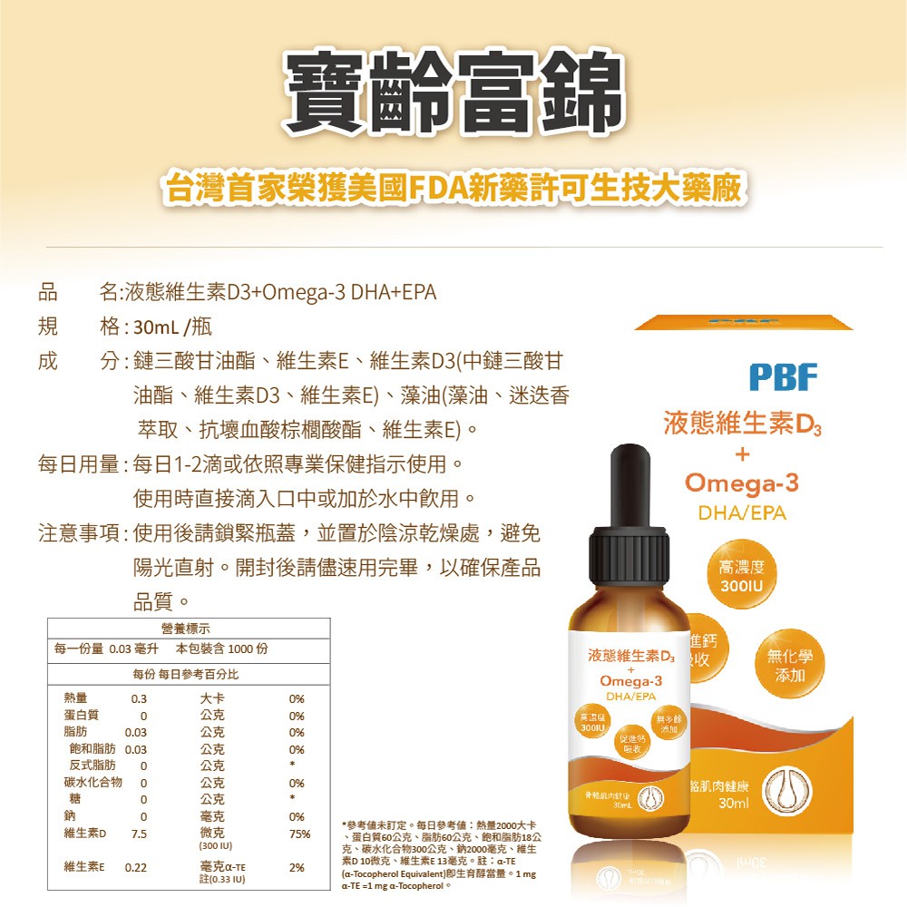 寶齡富錦 液態維生素D+Omaga3 30ml/瓶 官方直營 每滴含300IU維他命D 現貨 蝦皮直送