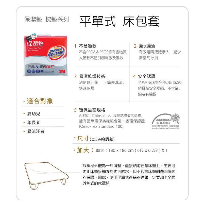 3M 防潑水防蟎保潔墊-平單式床包墊(標準單人/雙人/雙人加大) 一入 現貨 廠商直送