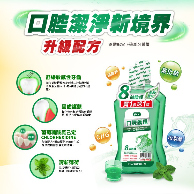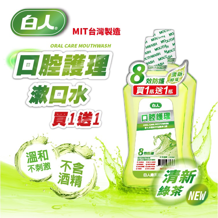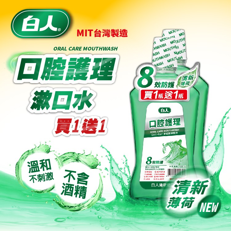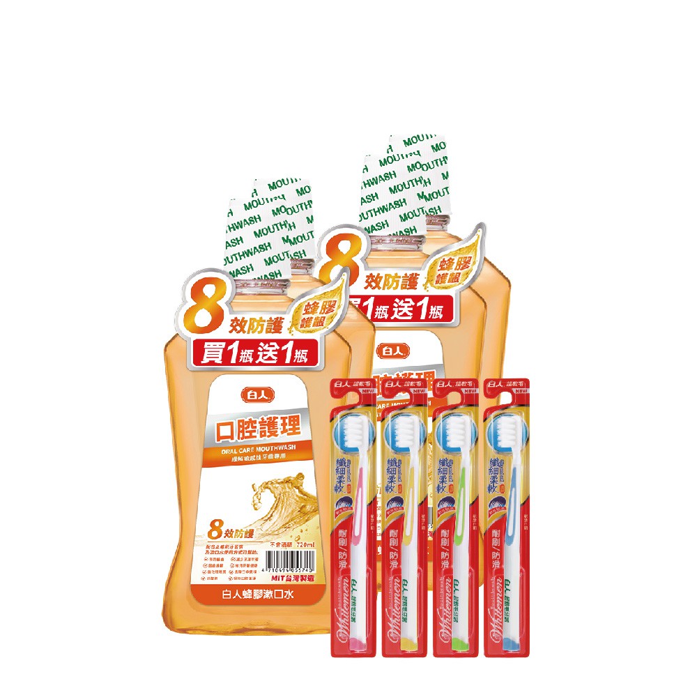 白人口腔護理漱口水720mlX4入+白人牙刷X4支(牙刷款式隨機) 現貨 蝦皮直送