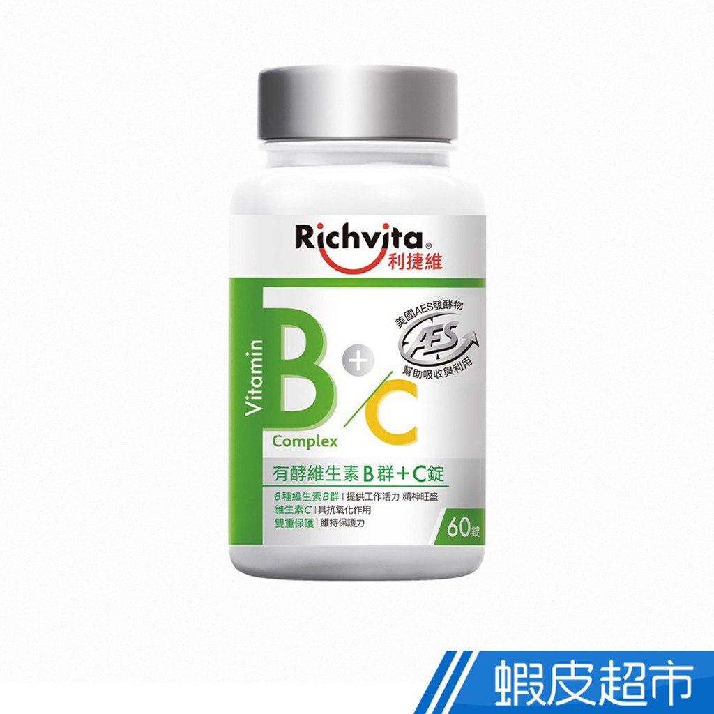 Richvita利捷維 有酵維生素B群+C錠 60錠/瓶 多入組 梁家瑋營養師推薦 8種維生素B群 現貨 廠商直送
