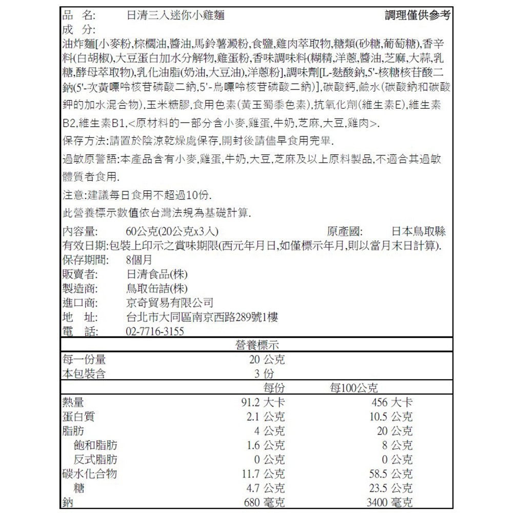 日本 日清 Nissin三入迷你小雞麵 60g/包 現貨 蝦皮直送