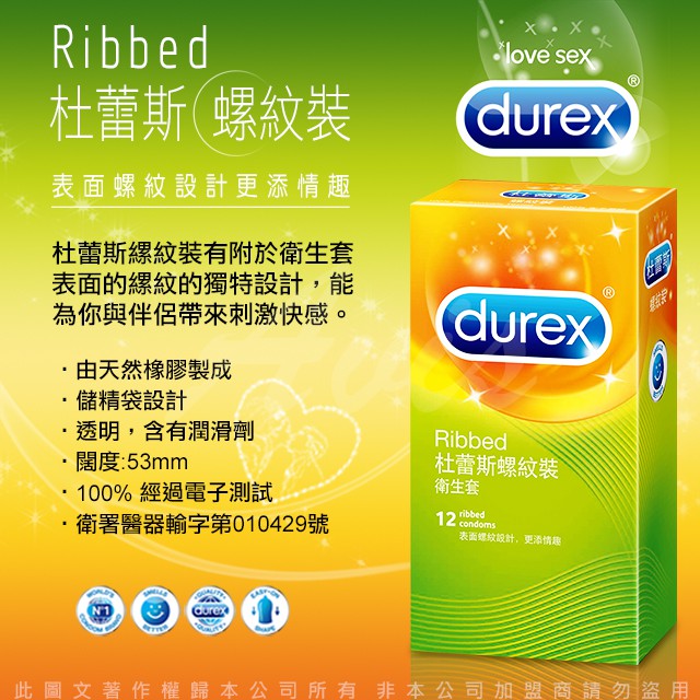 Durex杜蕾斯 螺紋裝 保險套 12入/盒 表面螺紋設計 更添情趣 現貨 蝦皮直送