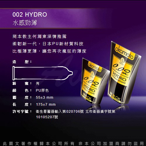 Okamoto岡本 002 HYDRO 水感勁薄保險套 6入/盒 現貨 蝦皮直送