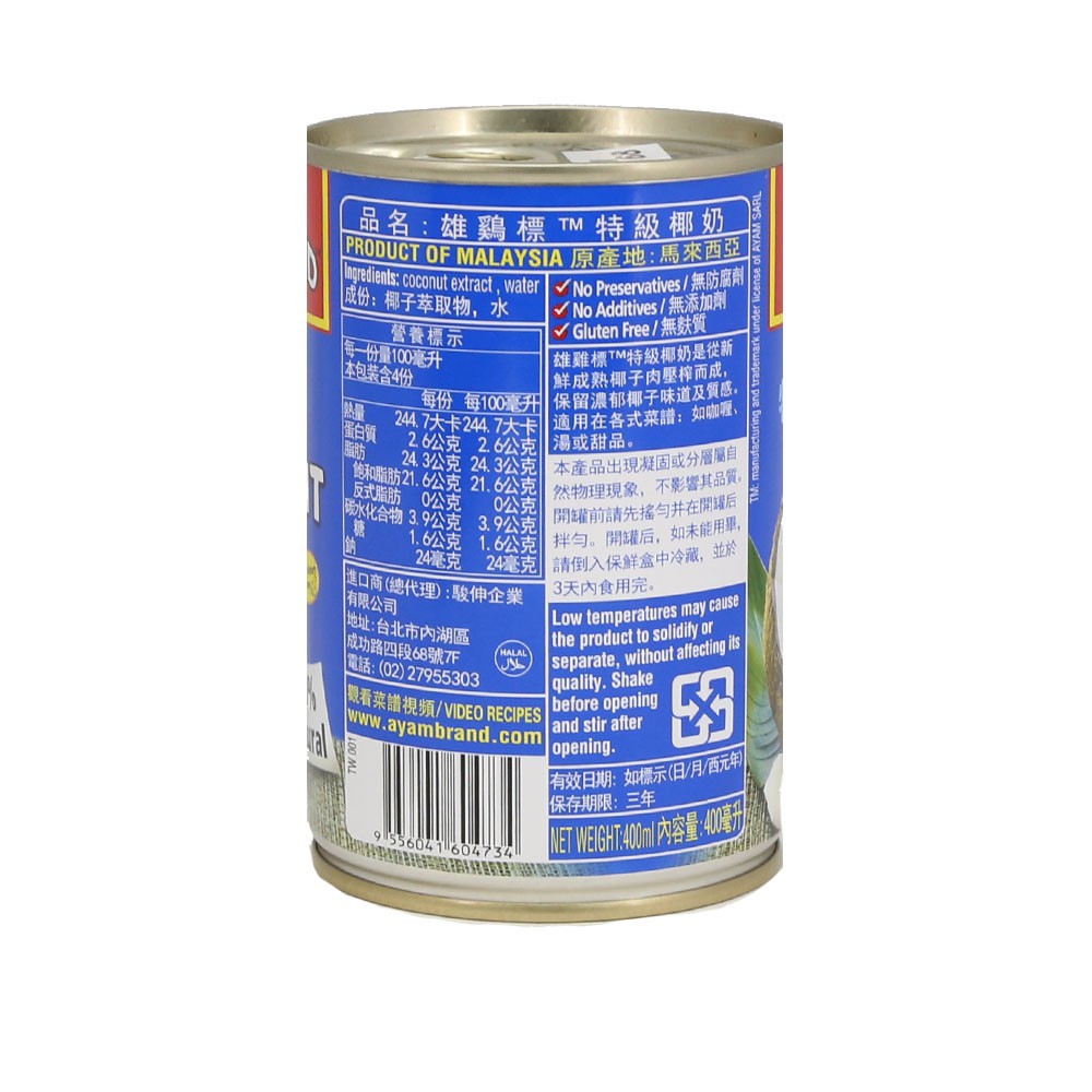 馬來西亞 AYAM 雄雞標特級椰奶 現貨 蝦皮直送
