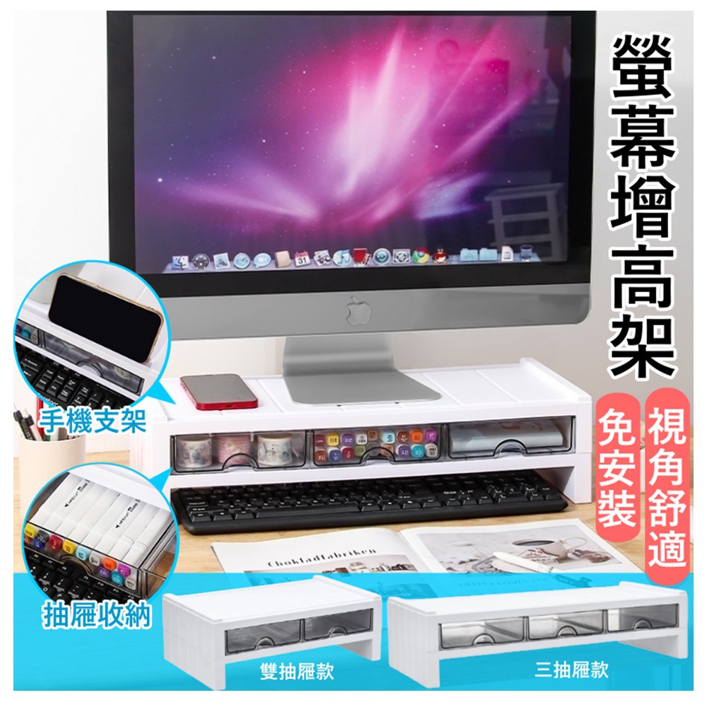 電腦螢幕桌面收納抽屜增高架 現貨 廠商直送
