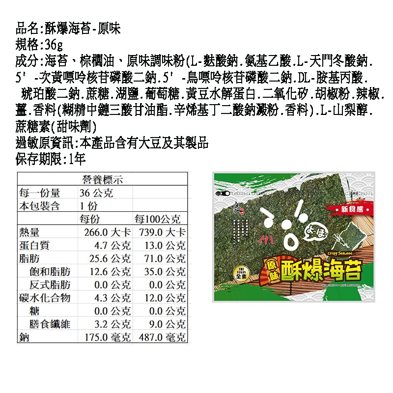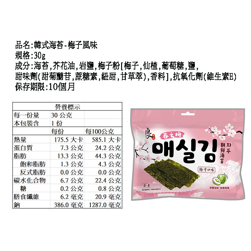 良澔海苔 片烤系列/酥爆系列/韓式梅子/日式無調味 海苔 25~36g x5包入 現貨 蝦皮直送