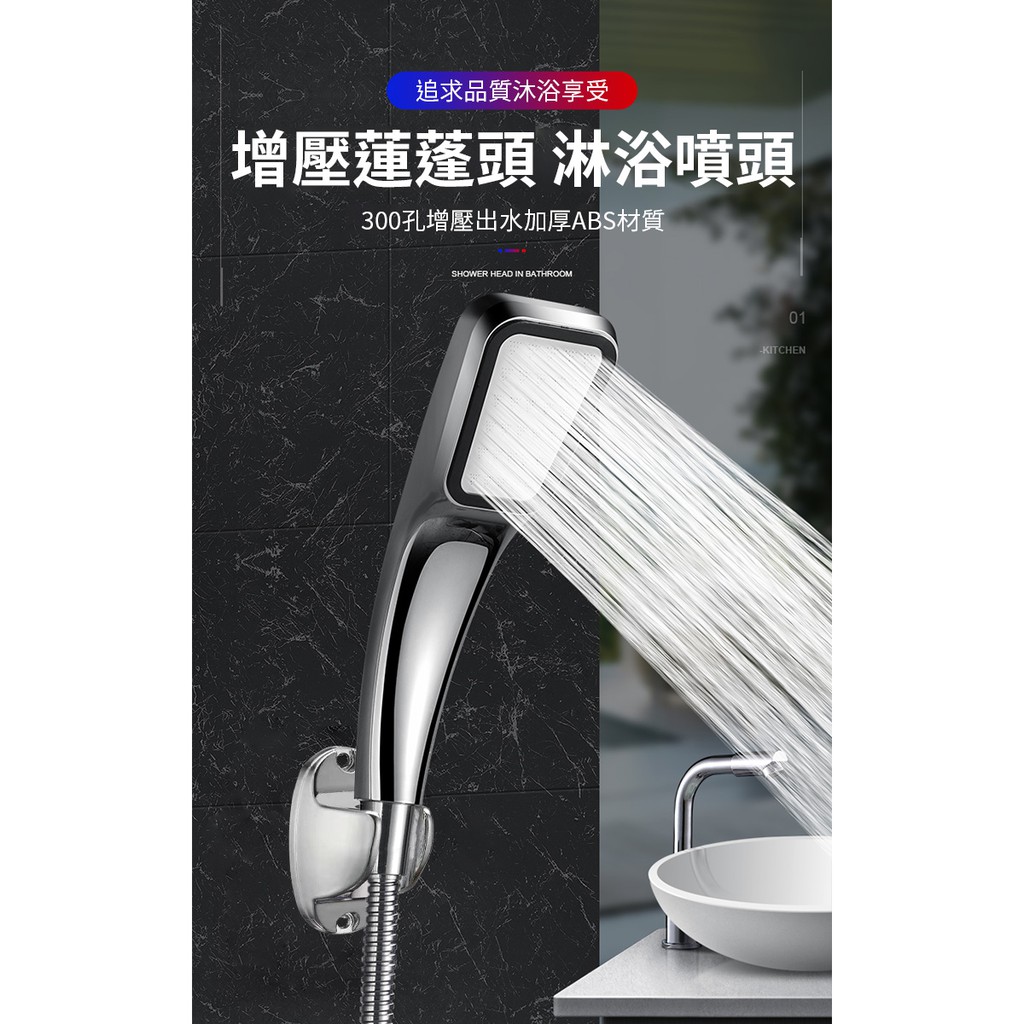 300孔增壓省水蓮蓬頭套組 蓮蓬頭 花灑 水管 支架 衛浴用品 浴室 底座 R505-1 現貨 廠商直送